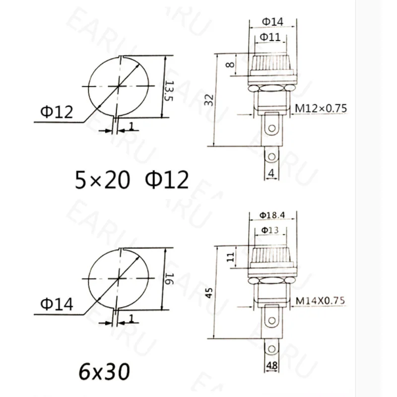 5 шт.лот 5*20 6*30 мм стеклянные держатели предохранителей 5x20 6x30 патрон страховочной трубки 15A 125VAC, 10A предохранитель опционально