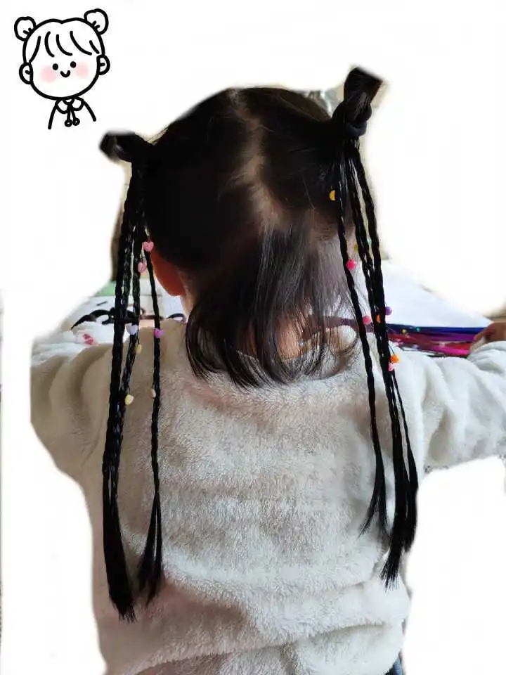 1 шт., Детский парик, косы, многоцветные мини-клипсы, Детские эласт...