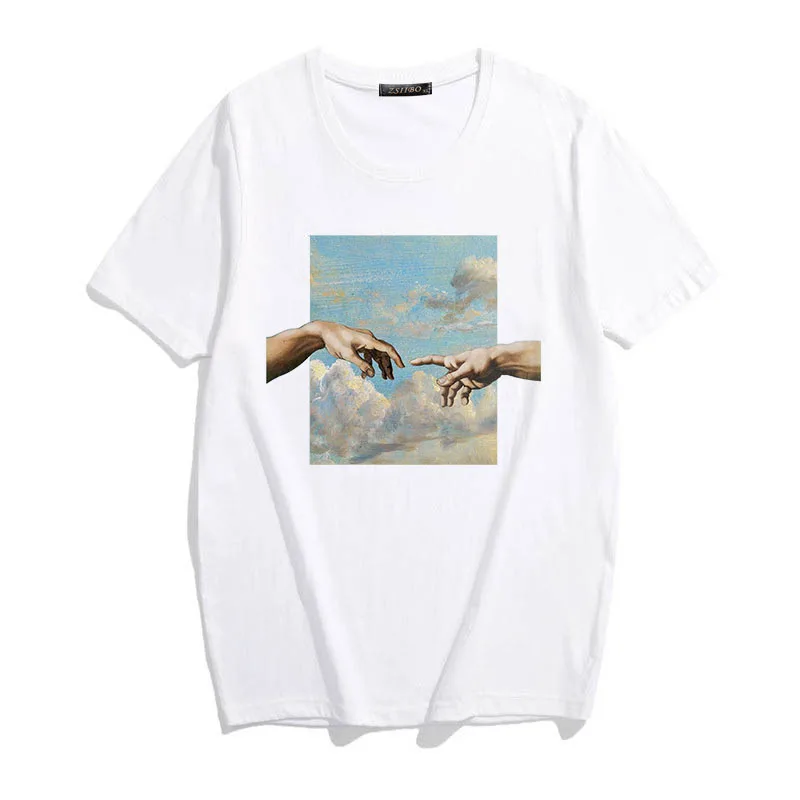 Футболка женская с коротким рукавом, хипстерский дизайн, Забавный топ с принтом неба, масляная живопись, большие размеры