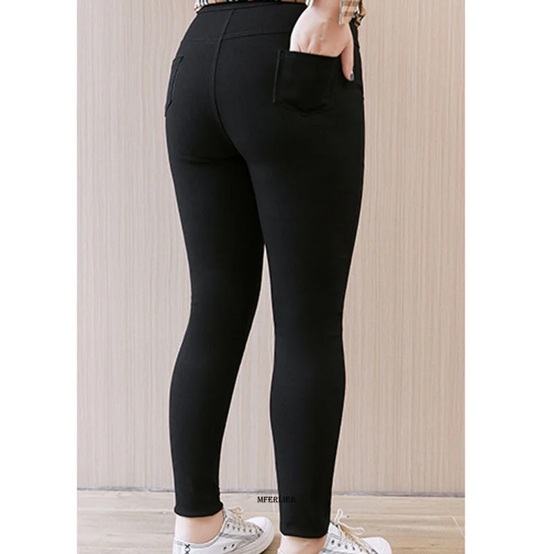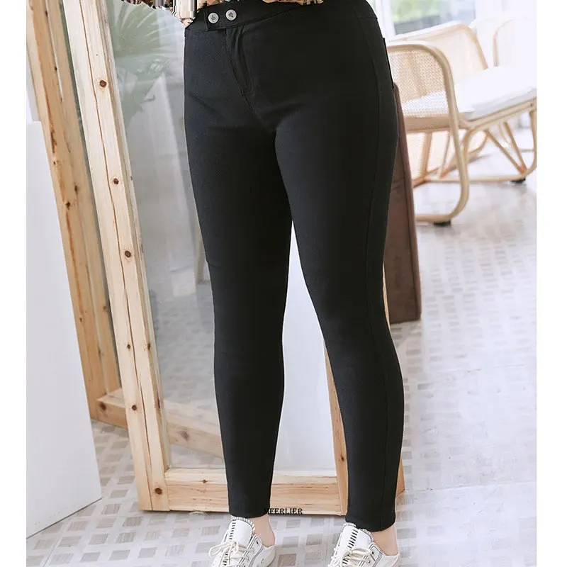 Женские узкие брюки-карандаш с завышенной талией, черные эластичные весенние брюки, модель 10XL, 150 кг