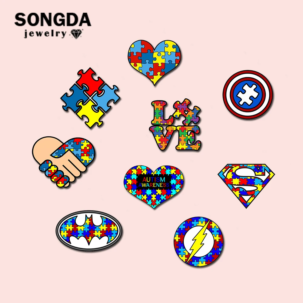 SONGDA осведомленность об аутизме акриловая булавка на лацкан сердце любовь руки пазл мультфильм искусство эпоксидная смола брошь булавка куртки рюкзак аксессуары