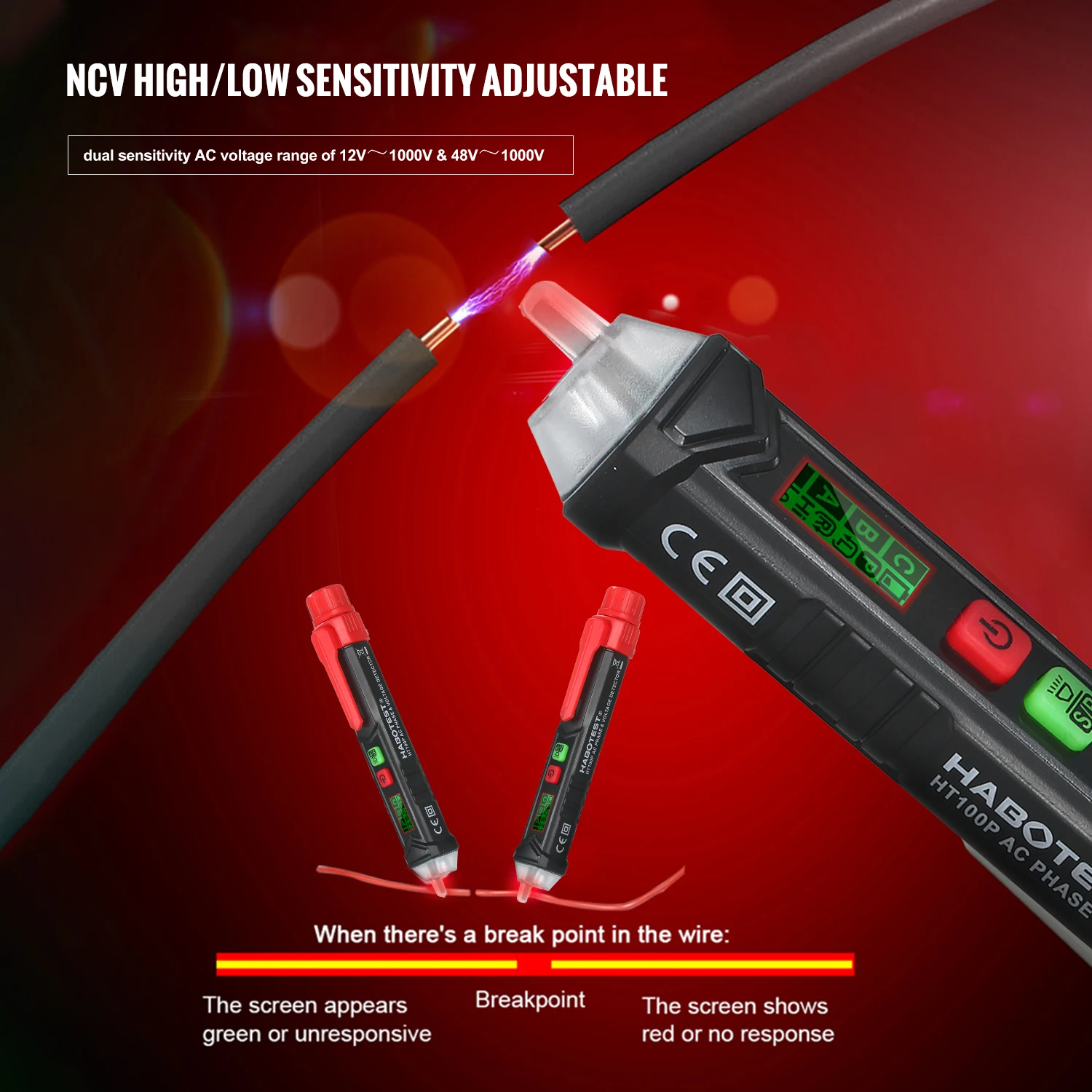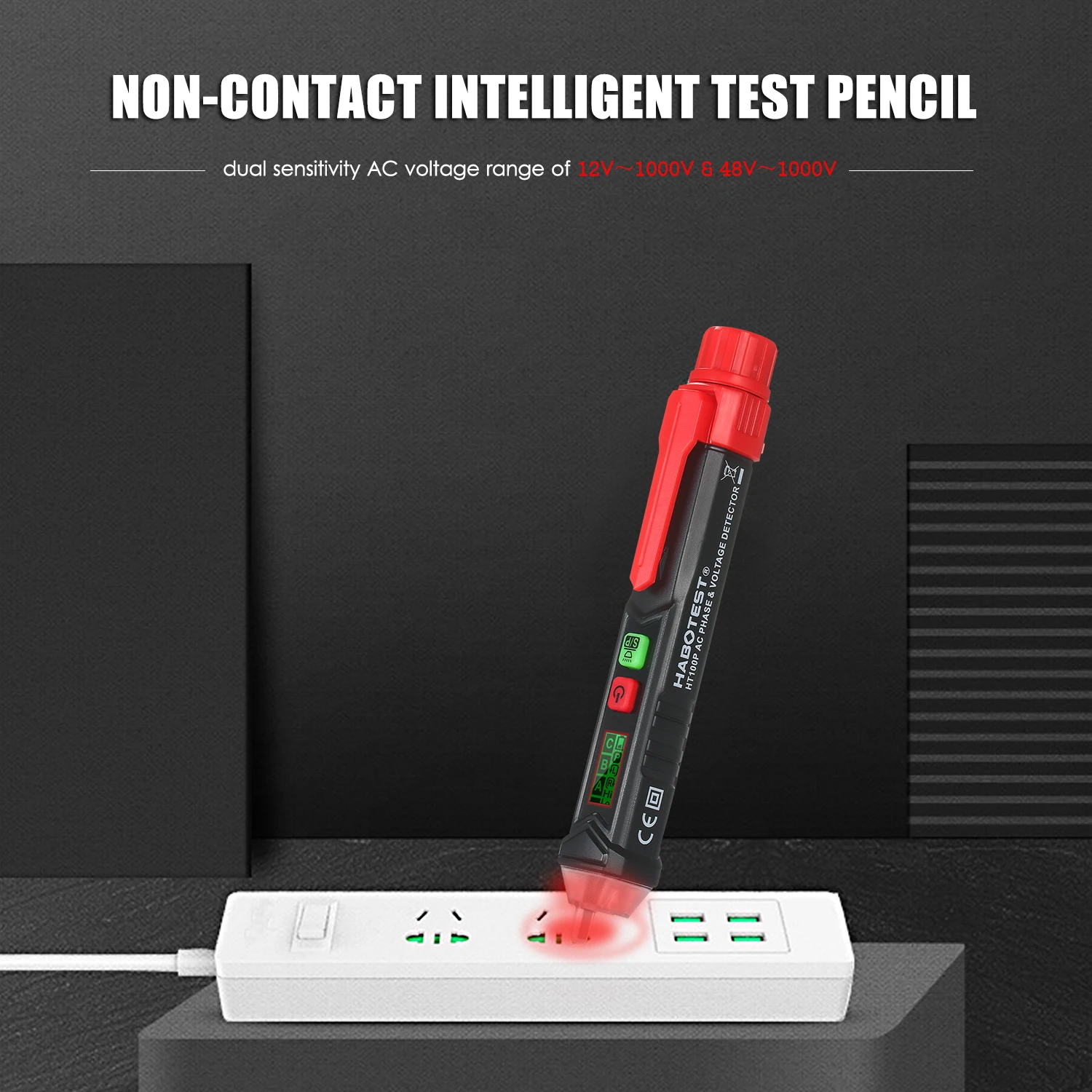 HABOTEST HT100P Портативный ЖК-цифровой тестер напряжения переменного тока фазы и детектор Напряжения Бесконтактный NCV ручка-тип электроскоп