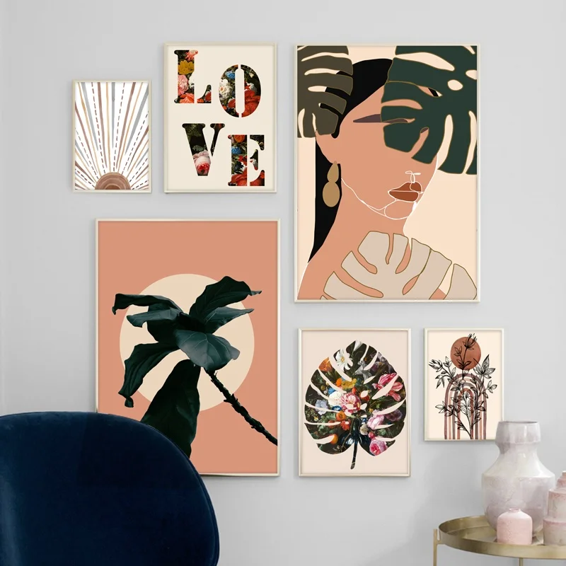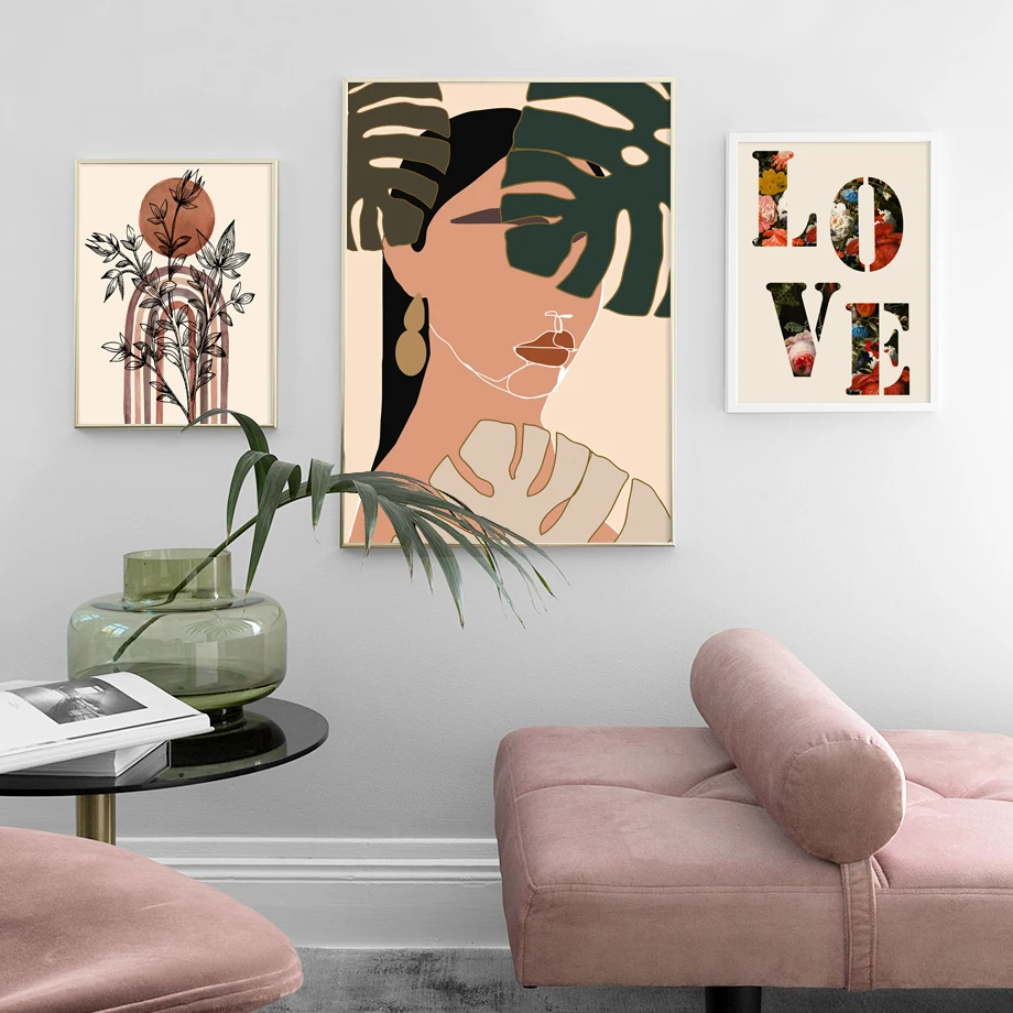 Бохо минималистичный абстрактный макияж для девушек, настенная Худо...