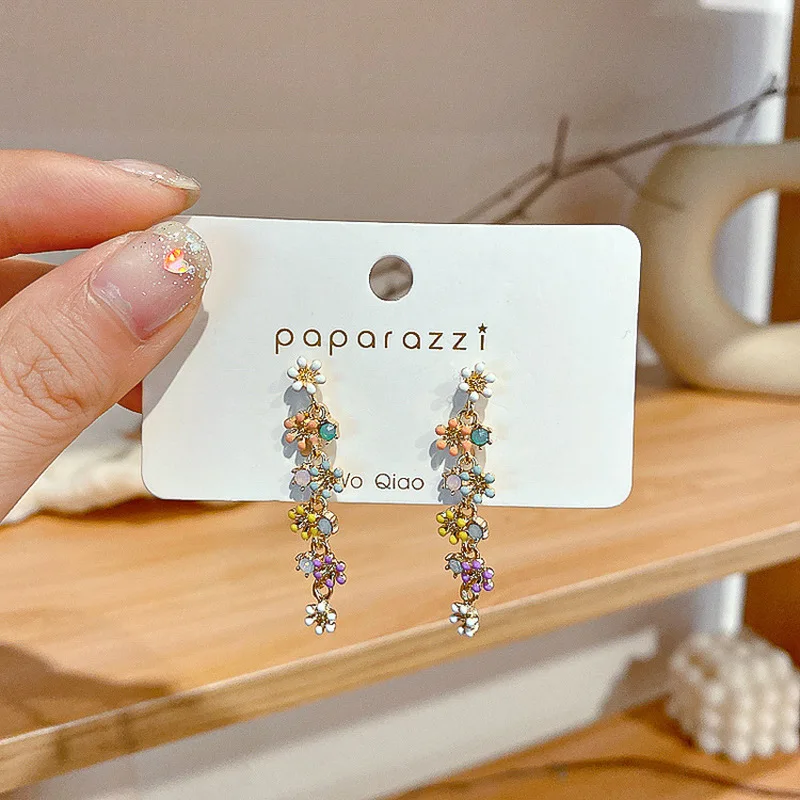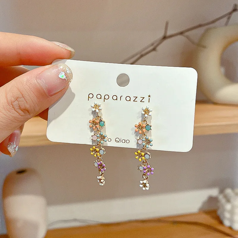 Яркие серьги в виде цветка в Корейском стиле, лето 2022, новый дизайн, металлические длинные серьги-подвески в виде цветка, яркие ювелирные изделия