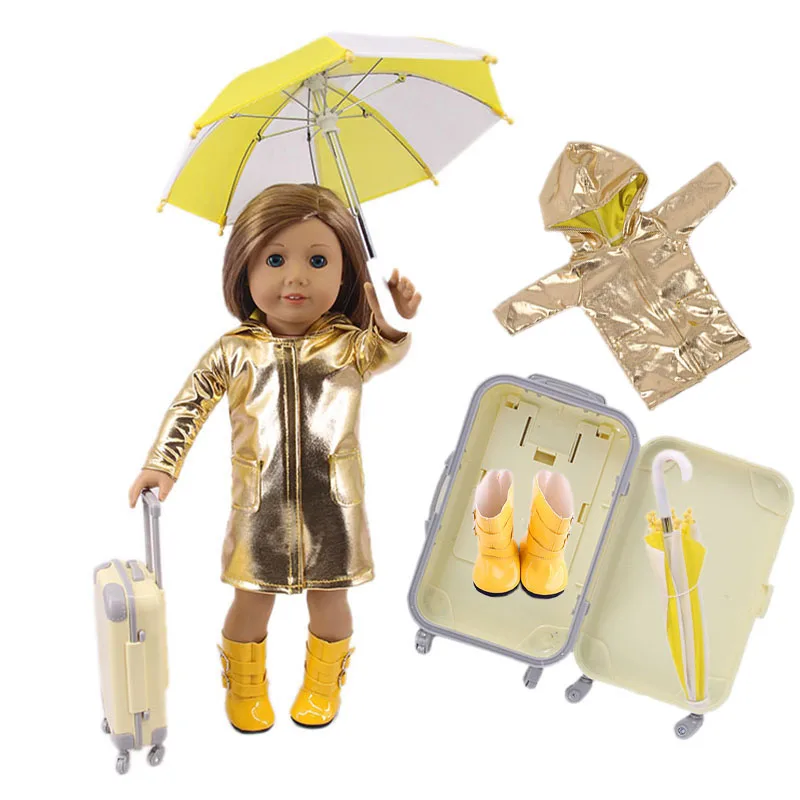 Комплект из кукольного плаща = чемодан + костюм для дождя + сапоги + зонтик для 18 дюймов, американский и 43 см, Детская кукла для новорожденных, аксессуары для игрушек для девочек, одежда