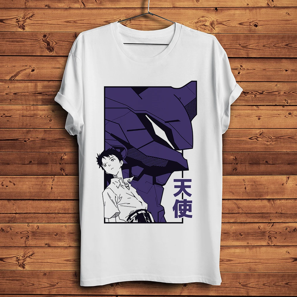 Футболка мужская с японским аниме Аянами Икари Синдзи смешной из ЭВА, Повседневная тенниска с коротким рукавом, унисекс, уличная одежда с принтом манги, белая, 01