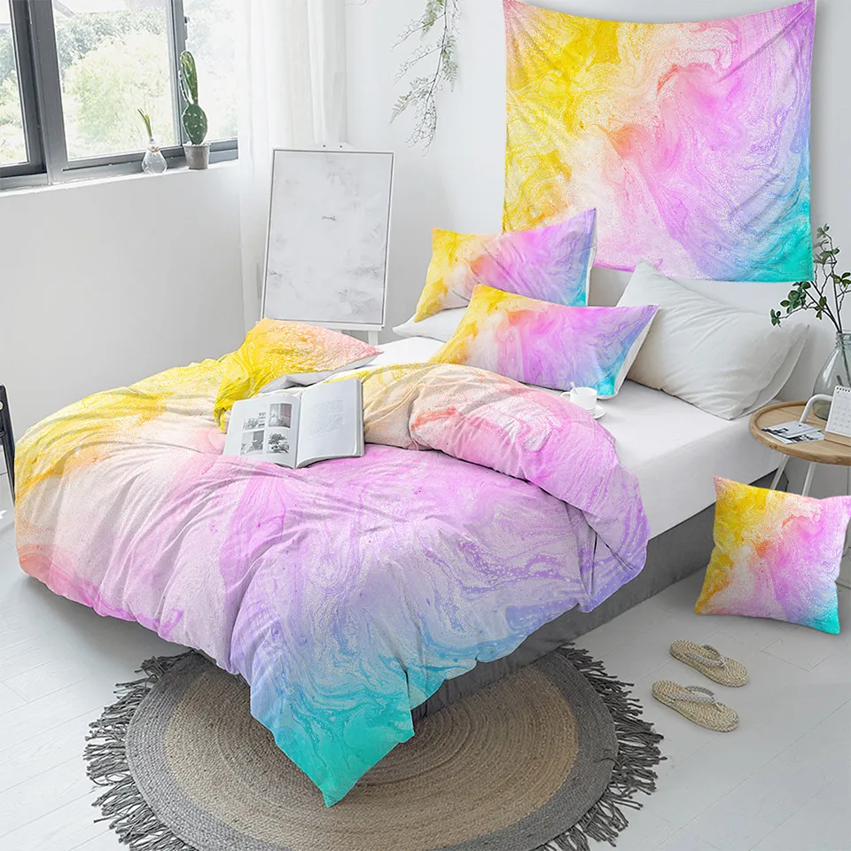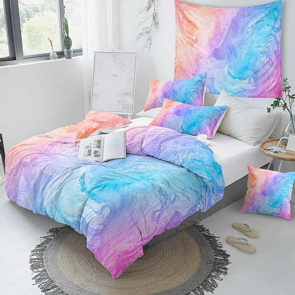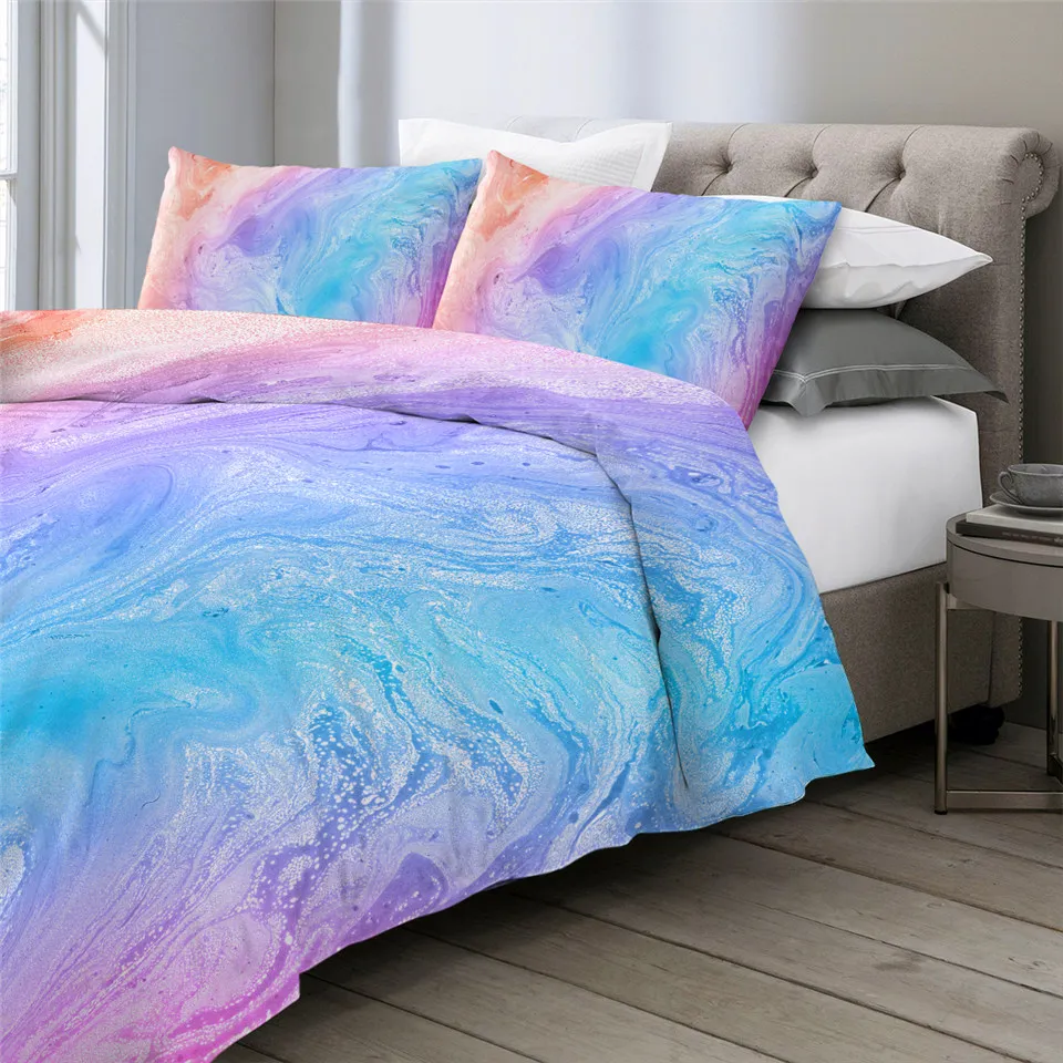 BeddingOutlet Роскошный розовый комплект постельного белья с радужным мраморным пододеяльником рок-постельное белье для девочек комплект натурального красочного постельного белья King Dropship
