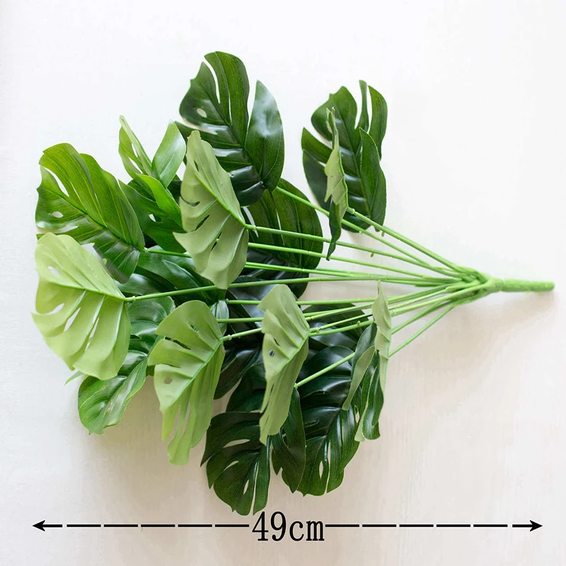 1 букет/18 листьев, искусственные растения, Зеленые пальмовые листья, монстера, украшение для дома, сада, балкона, Тропическое пластиковое искусственное растение