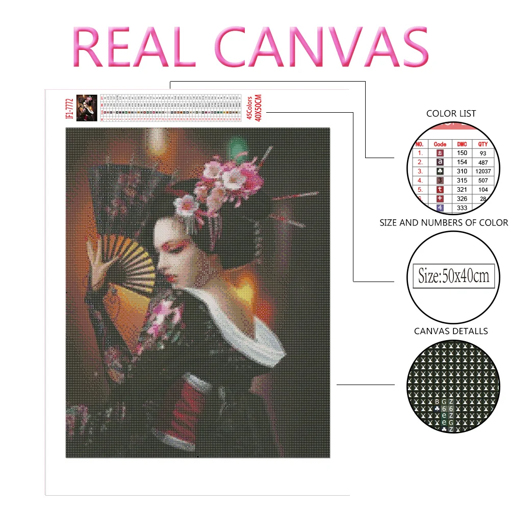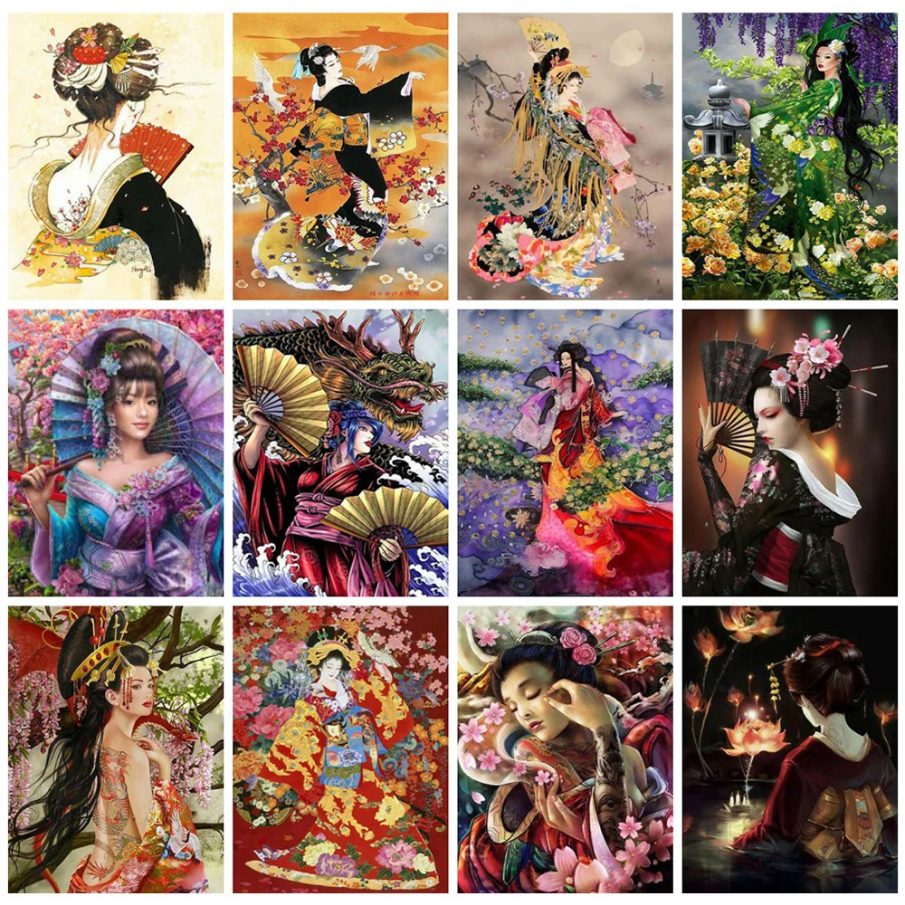 HUACAN алмазная вышивка портрет картина стразами мозаика Японская гейша наклейка на стену подарок ручной работы