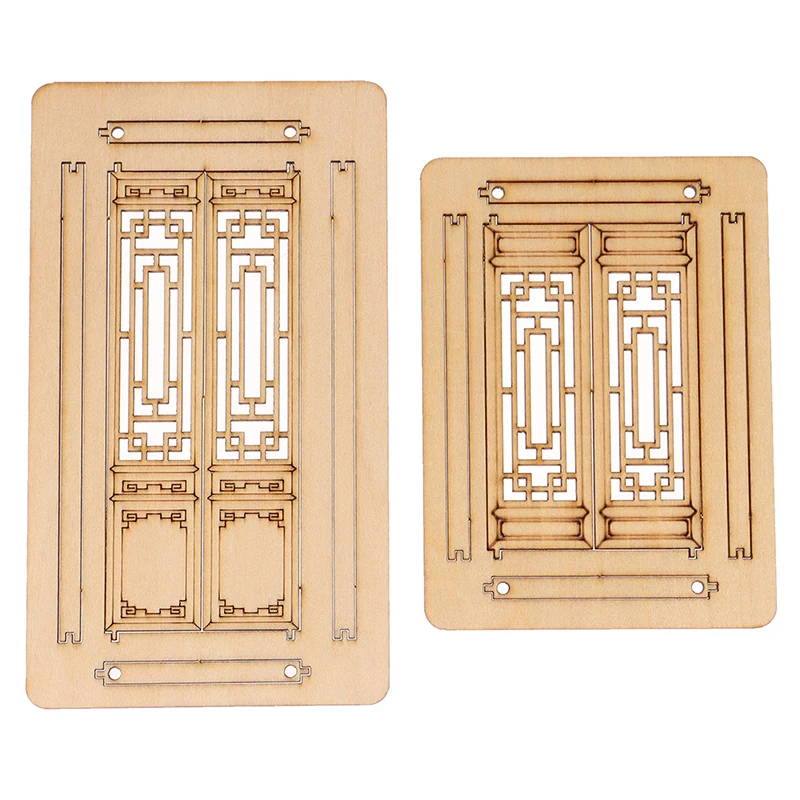 Миниатюрные аксессуары для кукольного дома, двухдверные окна и двери, дерево 112, для декора любых комнат, Неокрашенная модель