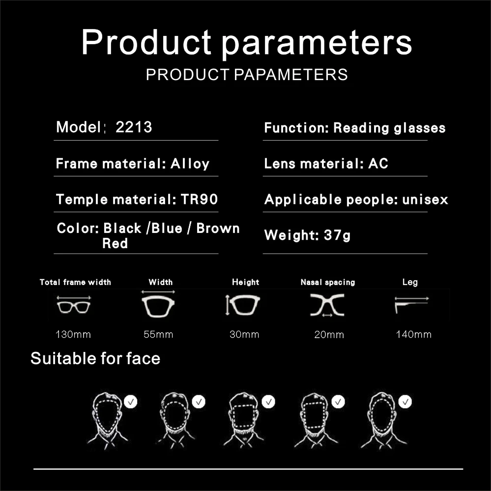 Очки для чтения мужские Полуободковые, 1,0, 1,5, 2,0, 2,5, 3,0, 3,5, 4,0