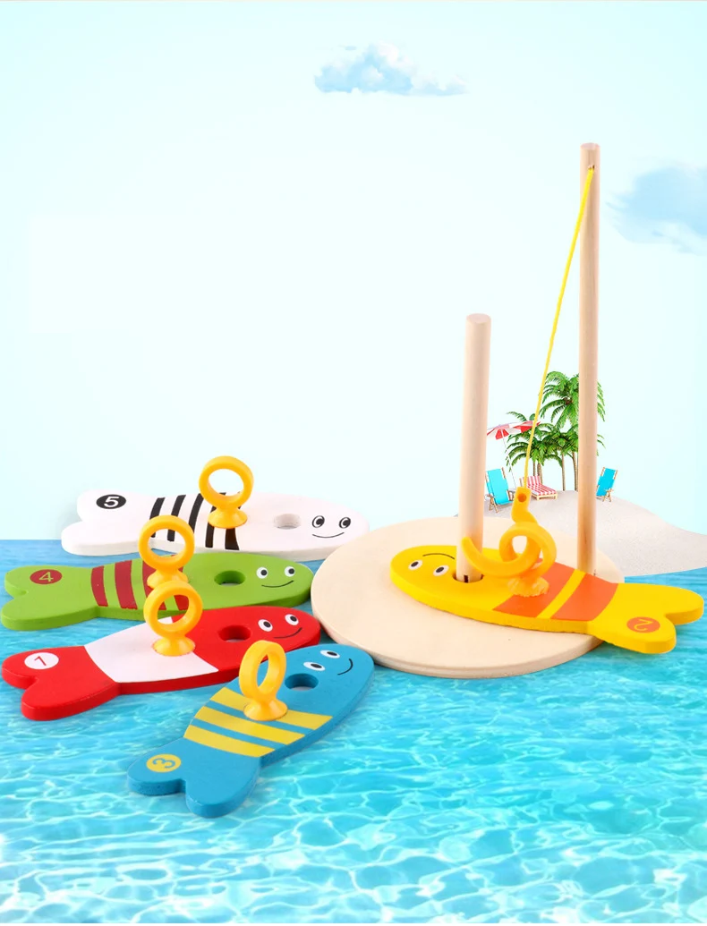 Красочные деревянные рыболовные цифровые игрушки, Набор детских рыбок, колонки, игрушки для детей, милые Ранние развивающие Мультяшные Забавные игрушки в подарок