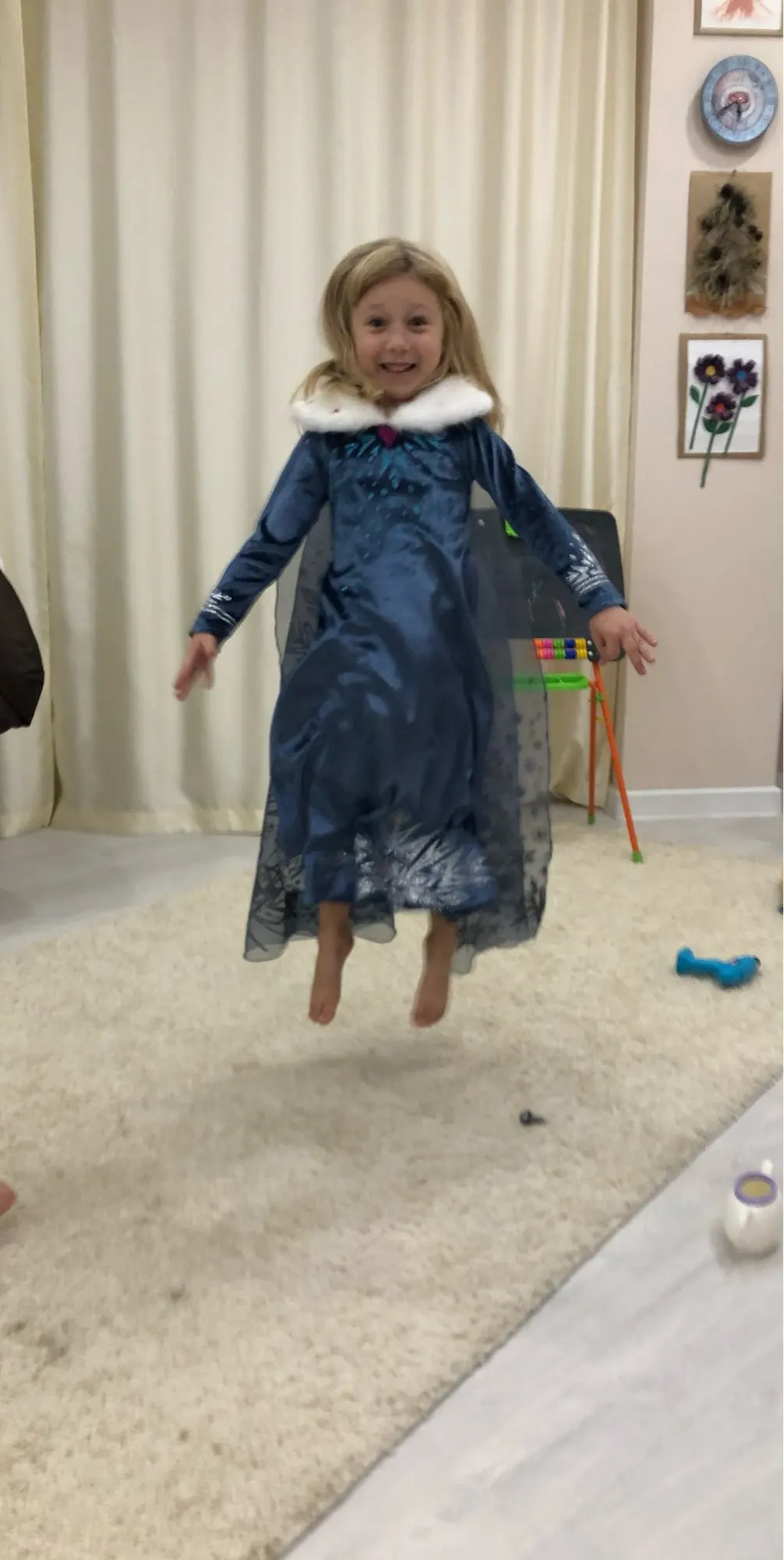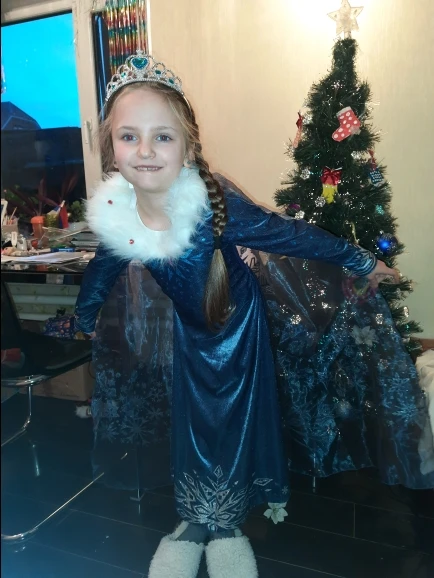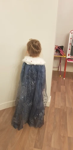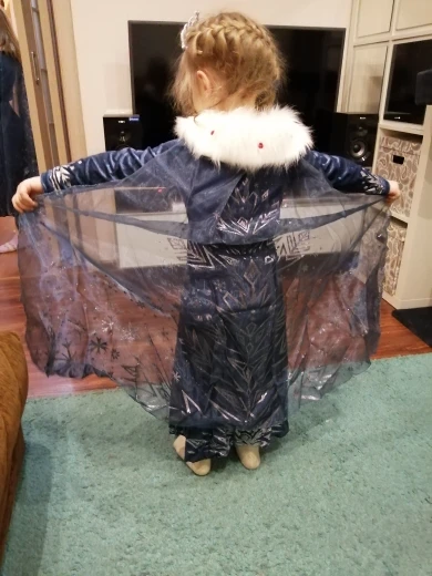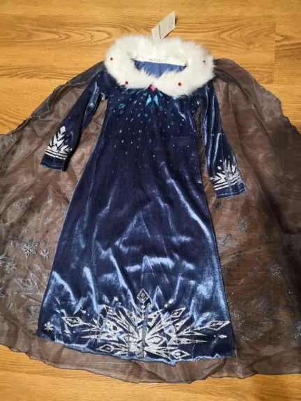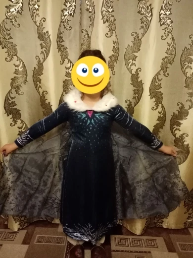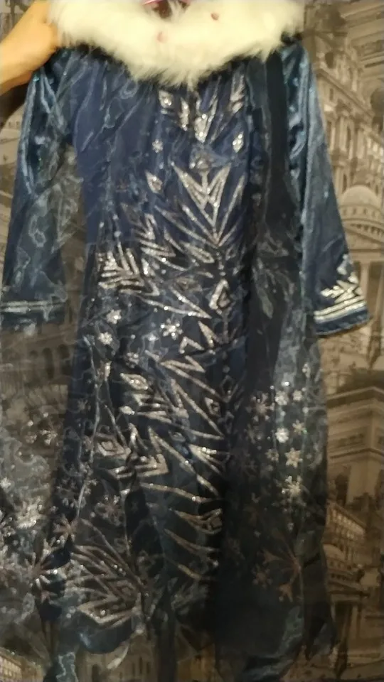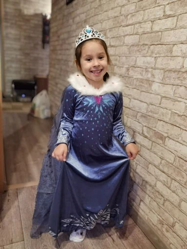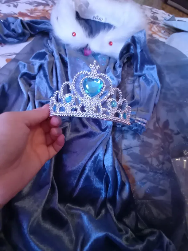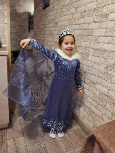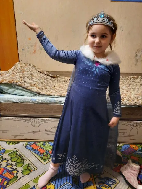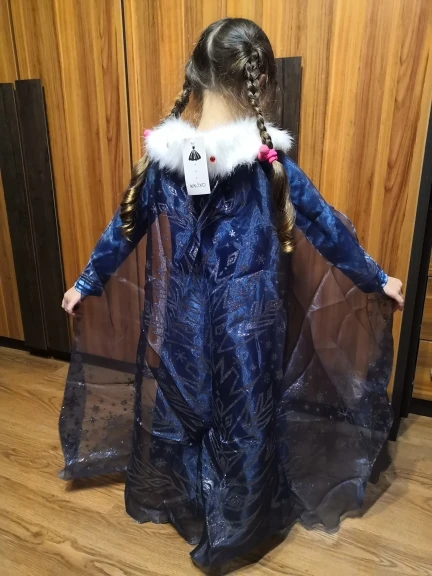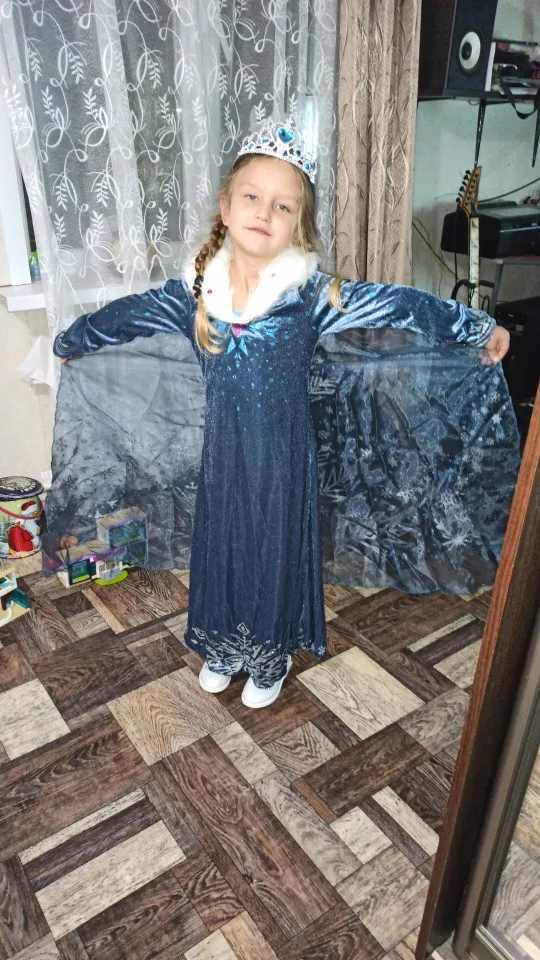 Очень красивое платье принцессы красивого синего цвета, очень хорошего качества, из бархата и органзы, красивые детали рукавов, внизу платья и на накидке. Также имеется красивая корона. Быстрая доставка. Большое спасибо продавцу. Я настоятельно рекомендую этого продавца. Поздравляем!