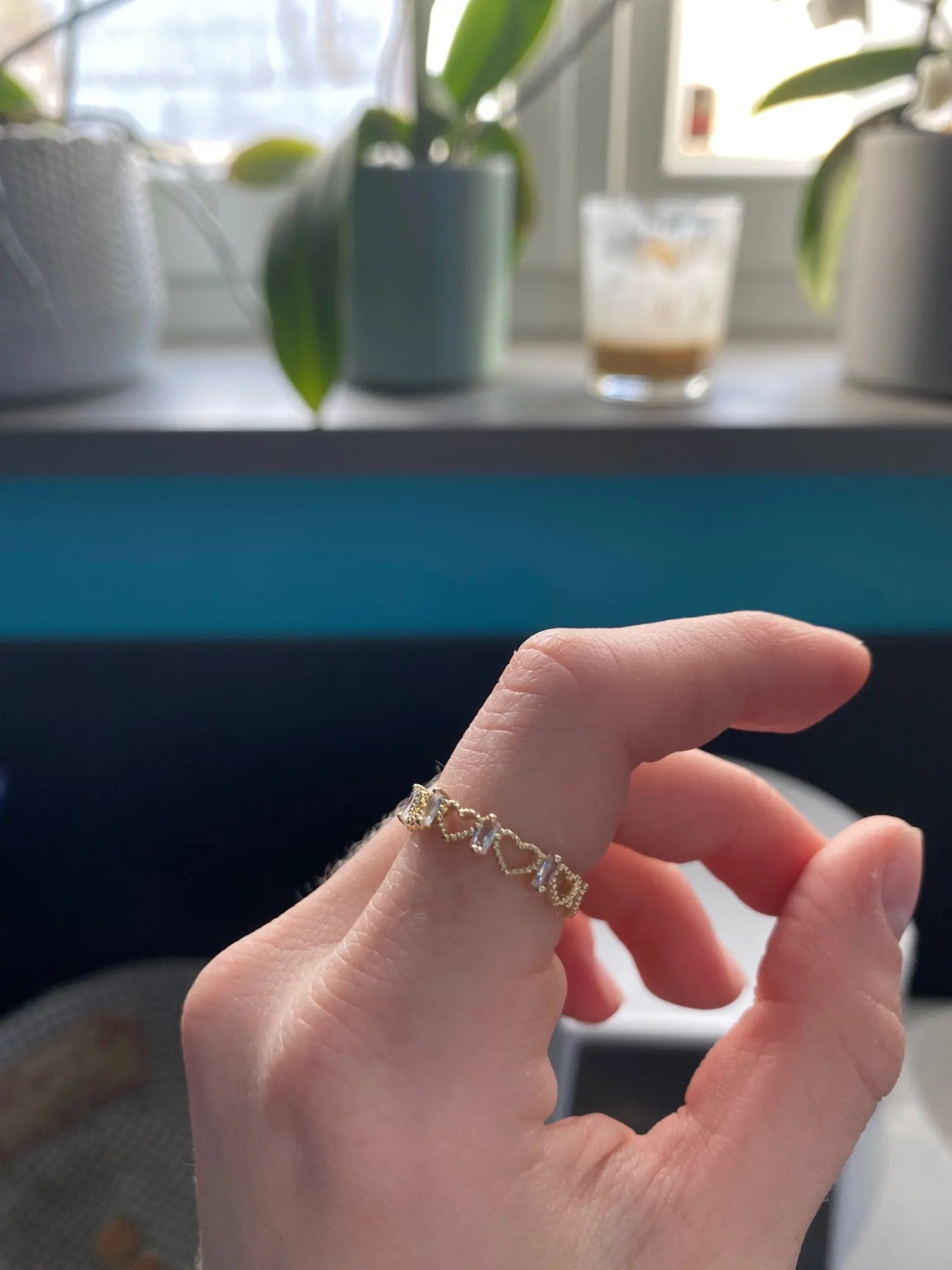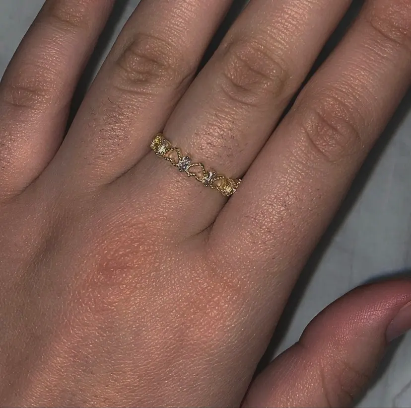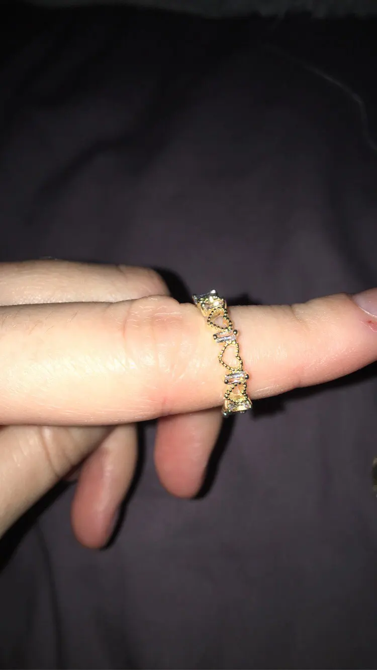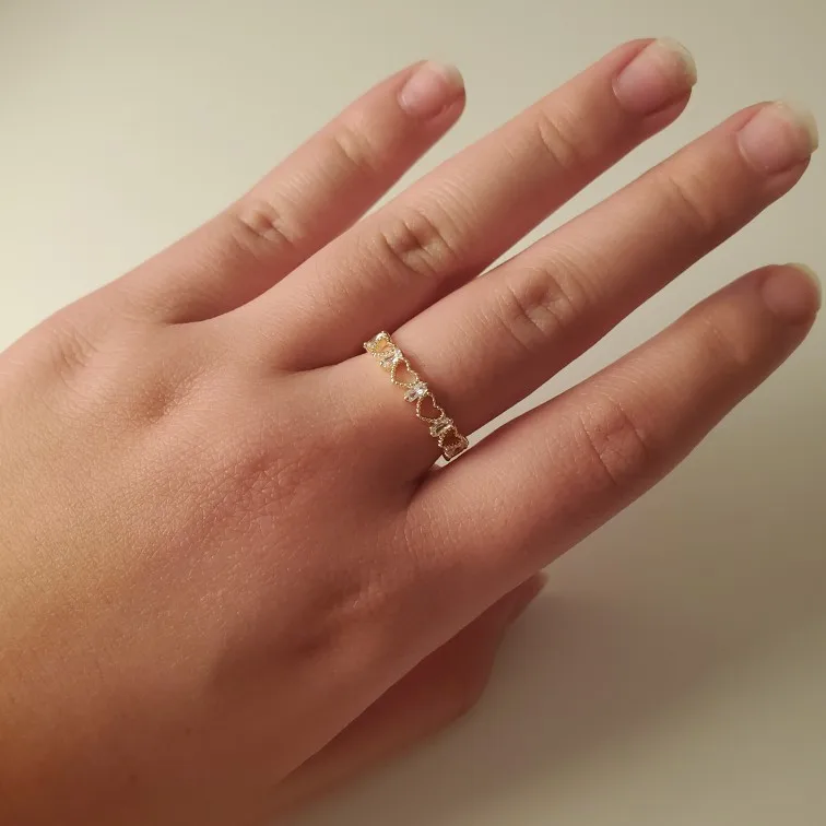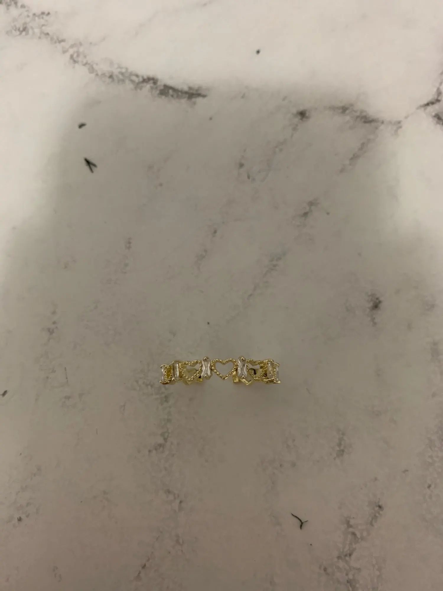 Он выглядит немного отличается от изображения, но все равно выглядит так мило. Цвет более желтый, чем золотистый idk. Просто он выглядит идеально на картинке. Подходит для каждого размера пальца, потому что он регулируется, который мне очень нравится. Милый