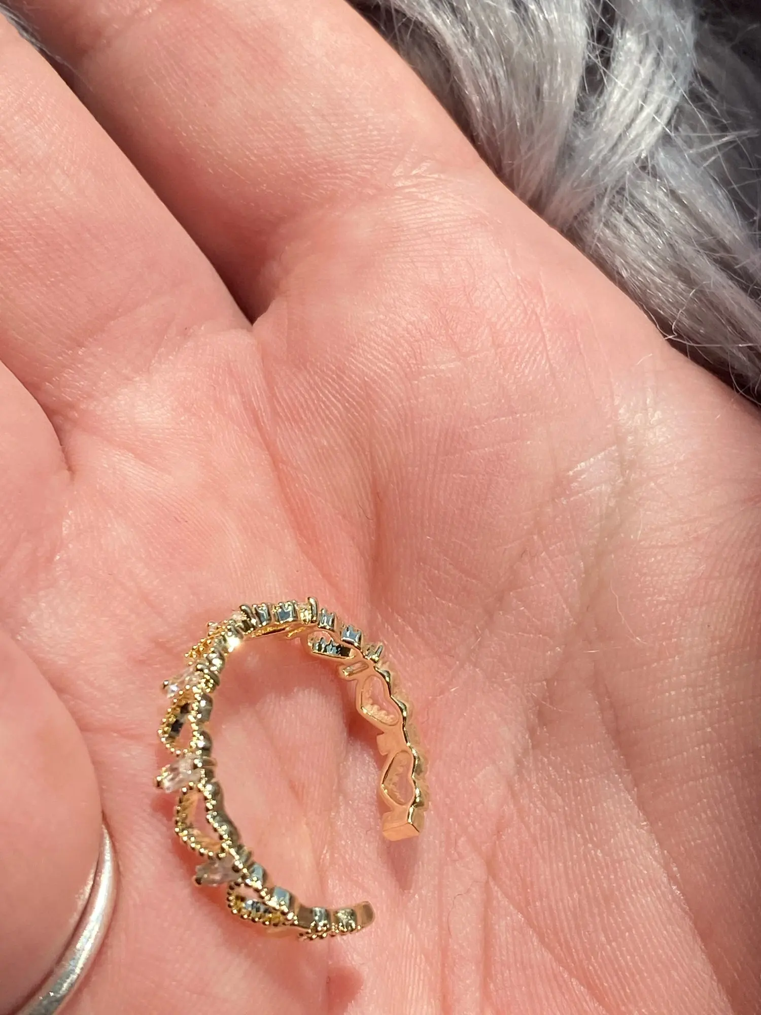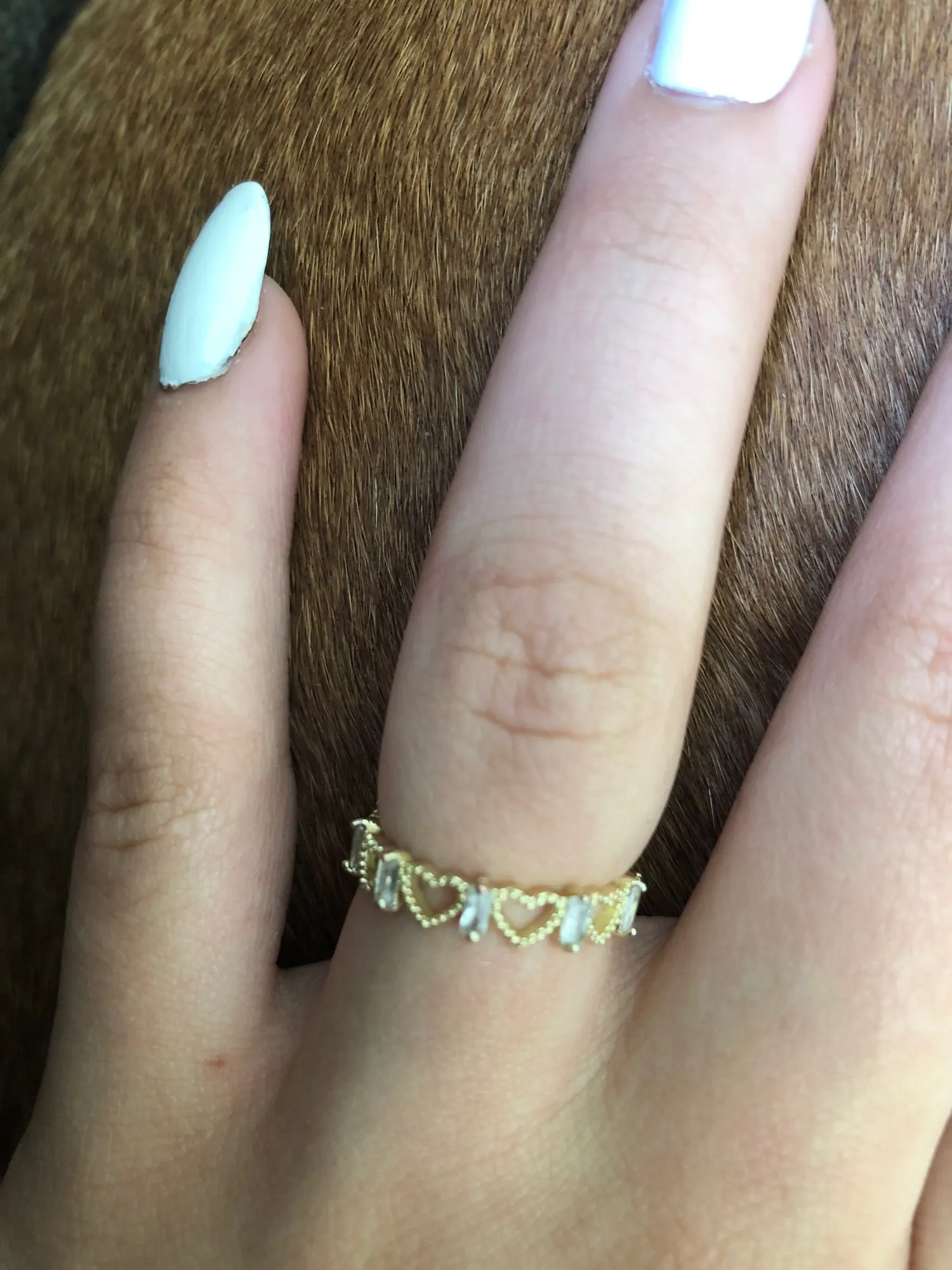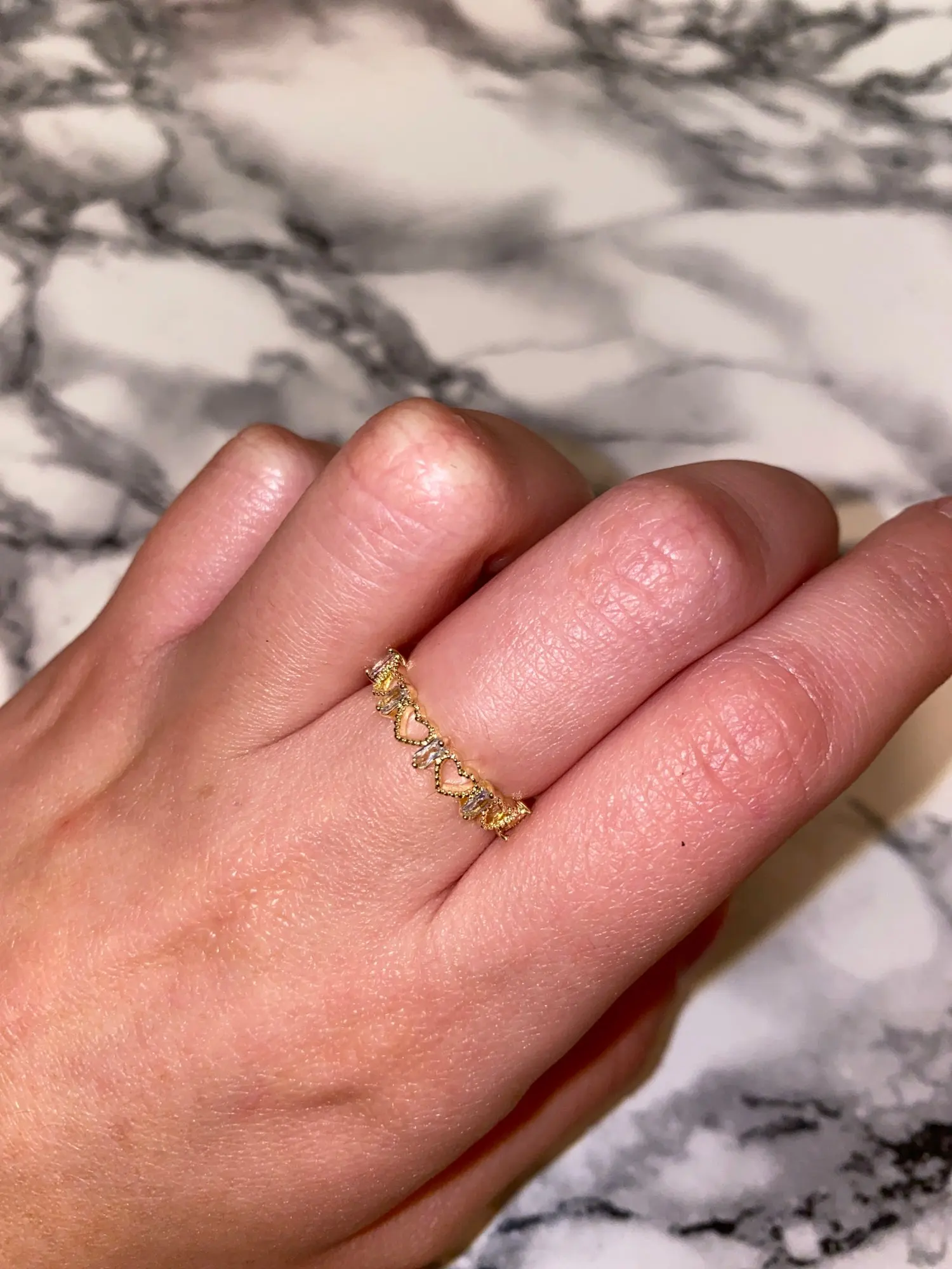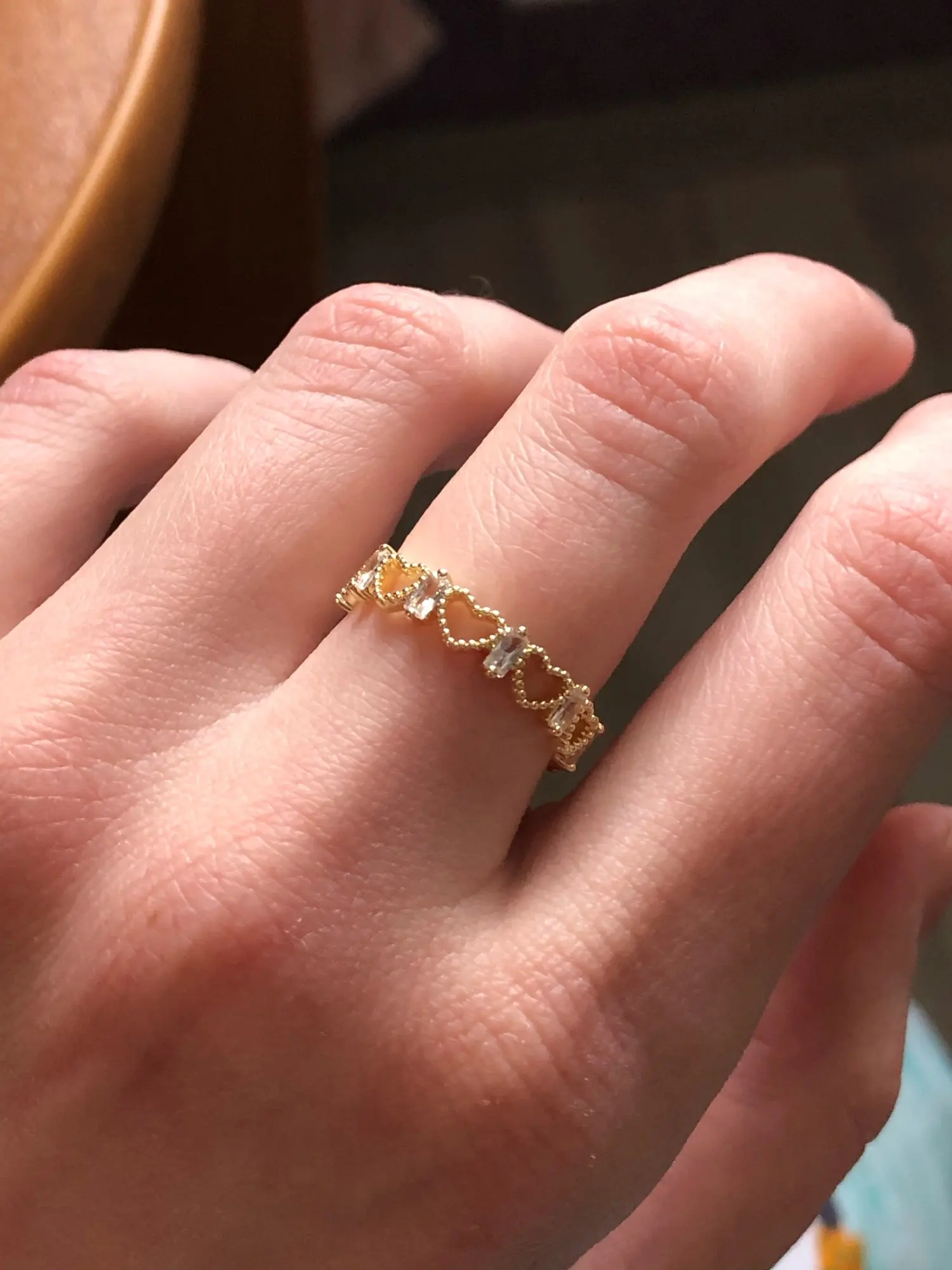 Он выглядит немного отличается от изображения, но все равно выглядит так мило. Цвет более желтый, чем золотистый idk. Просто он выглядит идеально на картинке. Подходит для каждого размера пальца, потому что он регулируется, который мне очень нравится. Милый