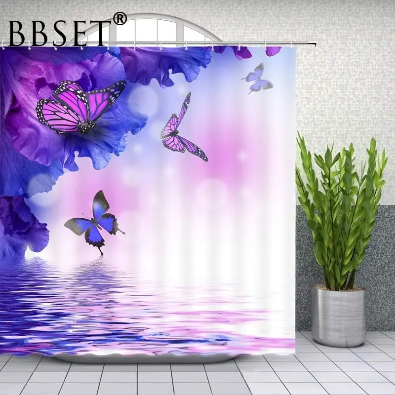 Занавеска для душа с бабочками, фиолетовые насекомые, животные, цветочные крылья, узор мечты, водонепроницаемая, разные размеры, Cortina De Bano, декор для ванной комнаты
