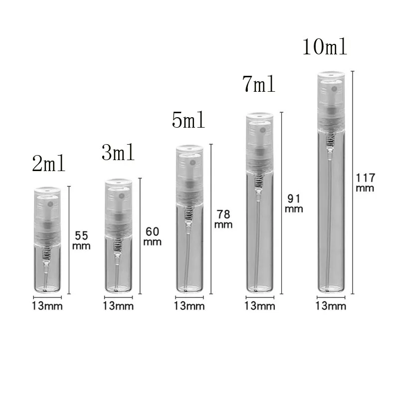 Пустой стеклянный флакон с распылителем, 10 шт., 2 мл, 3 мл, 5 мл, 7 мл, 10 мл