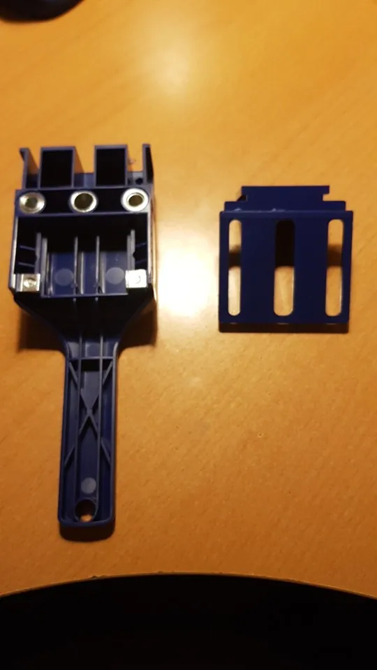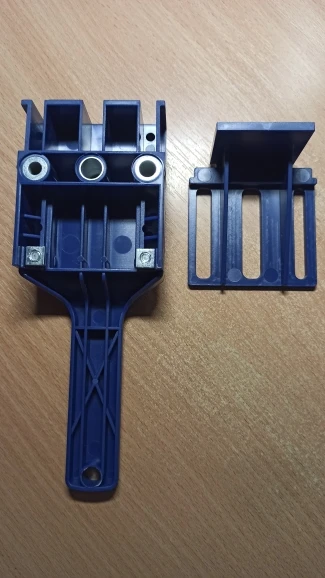 Для специализированного инструмента цена наверное хорошая , но ожидать супер точности не стоит, размеры втулок гуляют от заявленных, центровку пока не проверил. Если геометрия хорошая, то в теории можно подобрать сверла под втулки, а в моем случае это 6.5 , 10.1, 8.2 мм. и использовать самодельные шканты нужного размера. Что касается размеров пластика , смотрите фотки, разница проушин на подвижном упоре и самого кондуктора 0.45 мм. Пришло кстати быстро, в пятерочку.