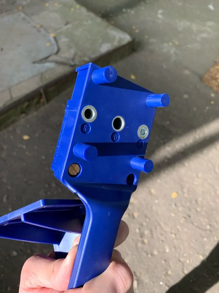 Устройство очень полезное для столярных работ, сделано качественно. Направление сверления ровное, при условии надёжного удержания шаблона.