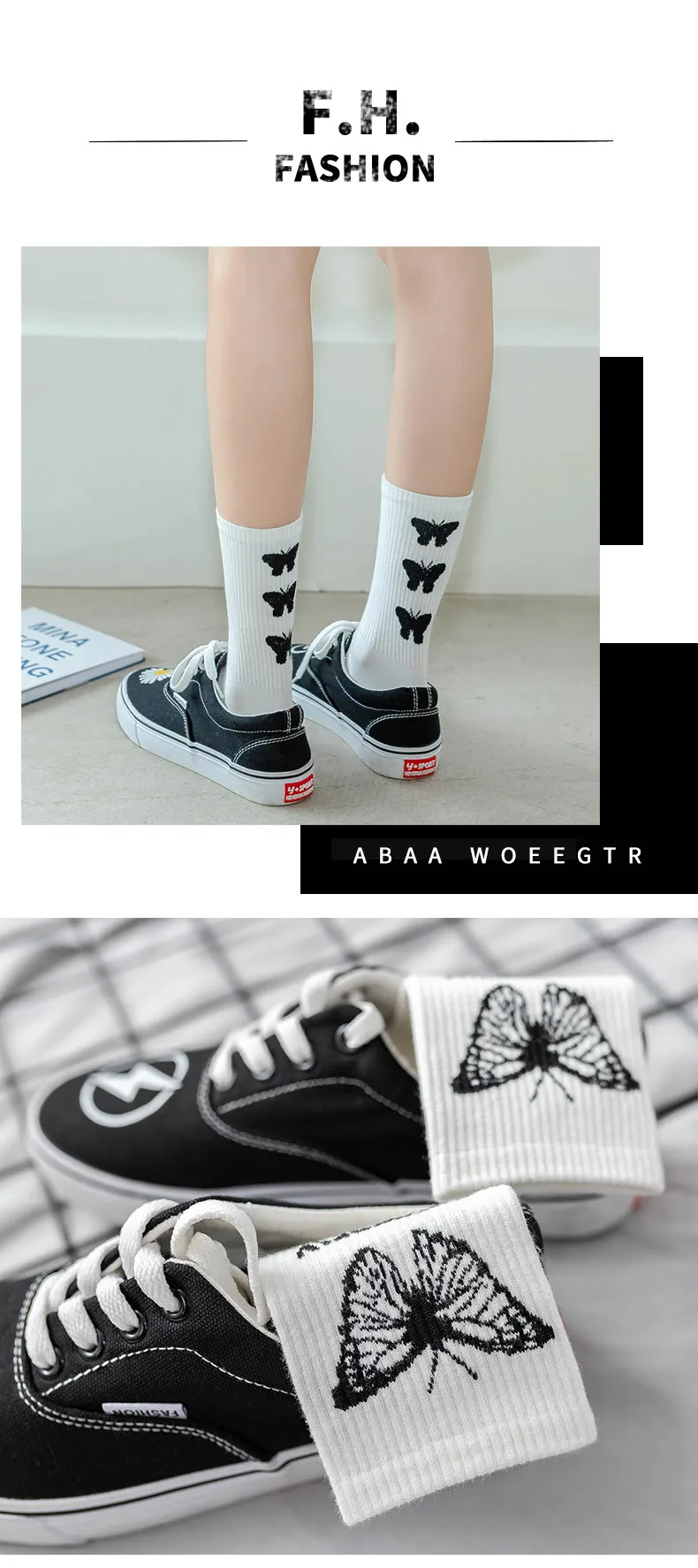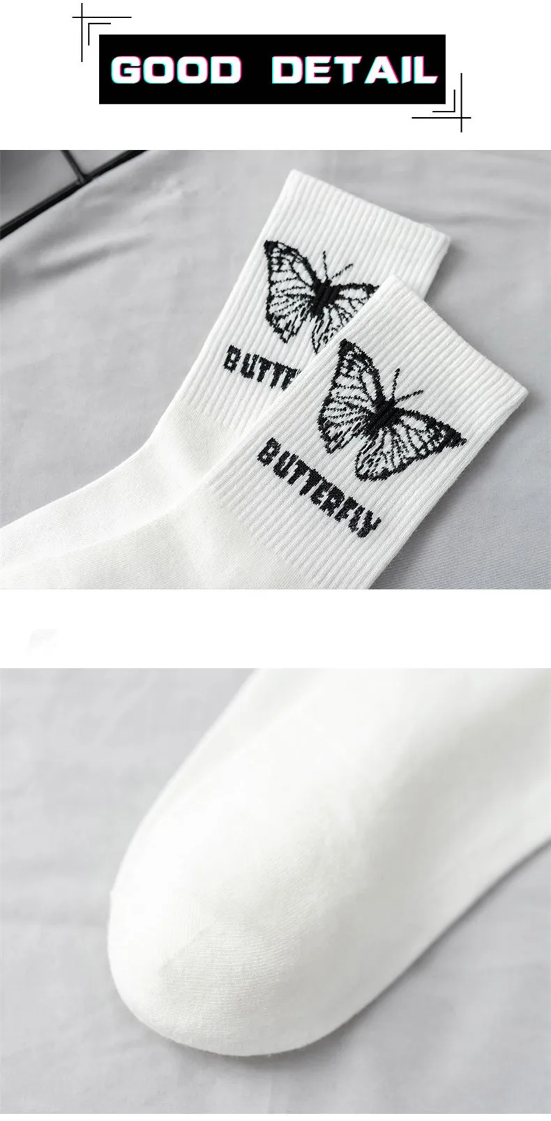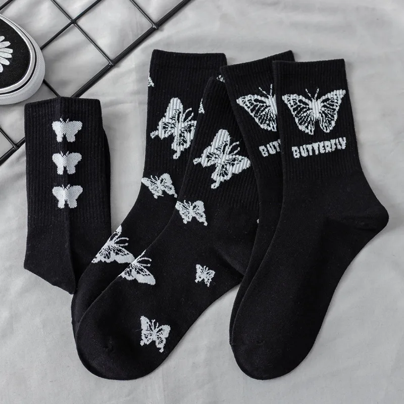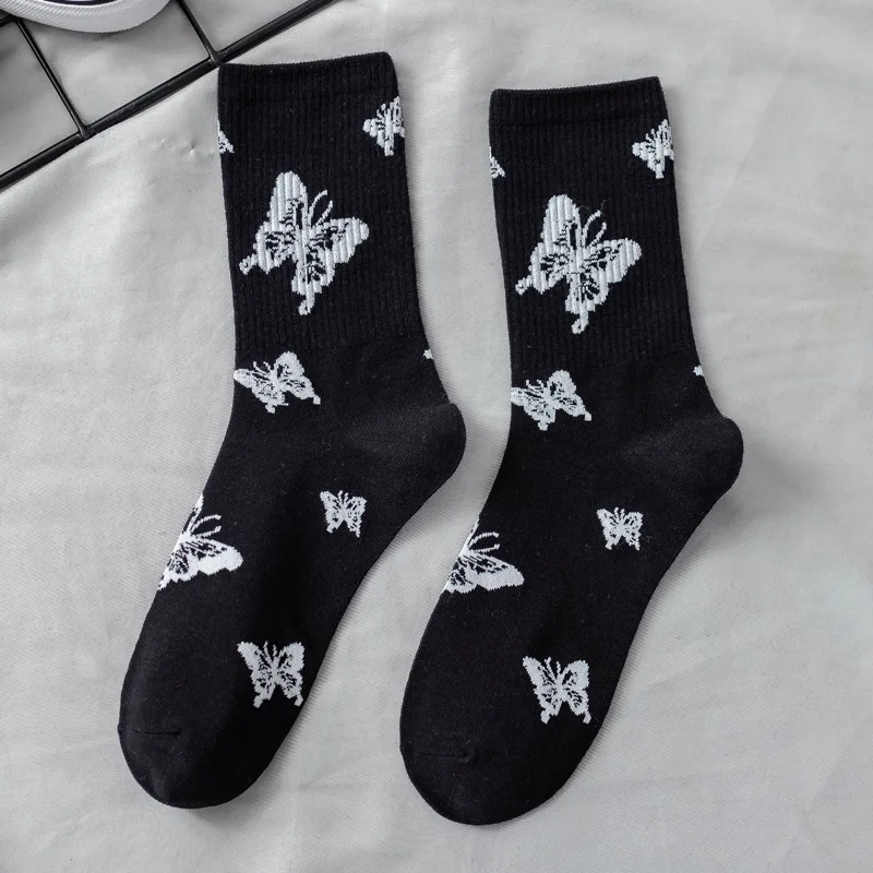 Носки женские осенние белые в японском стиле, с милыми бабочками