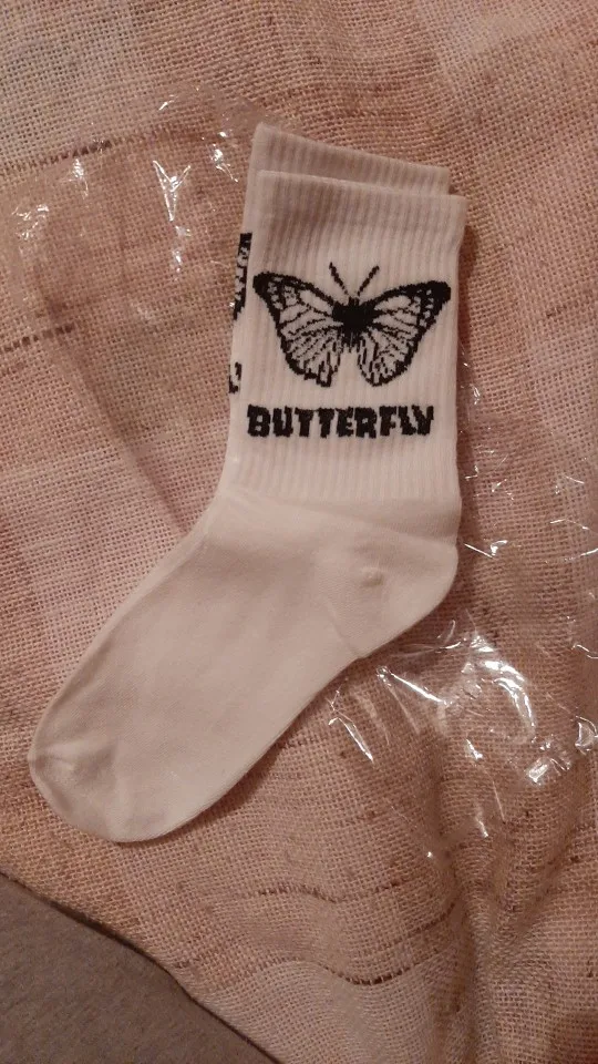Носки очень крутые, правда они синтетические ноги будут очень потеть. Бабочки как-бы вышити эта не наклейка. Жаль товар отслеживался плохо