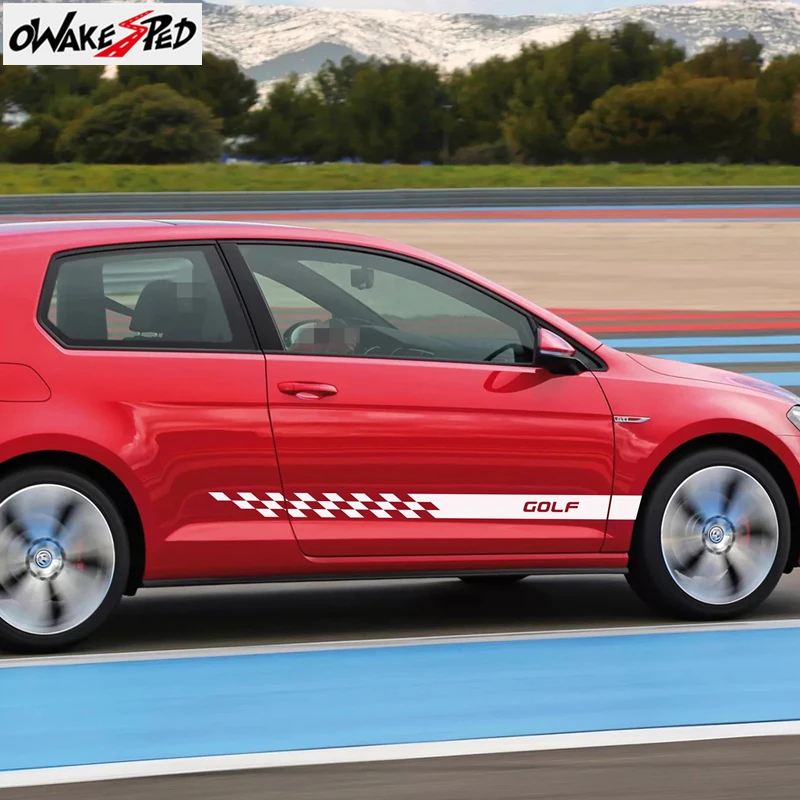 Автомобильные спортивные Стильные наклейки с полосками на дверь и юбку, автомобильные виниловые наклейки для Volkswagen Golf 4 5 6 7 MK7 MK5 MK2 MK6 MK4 MK3