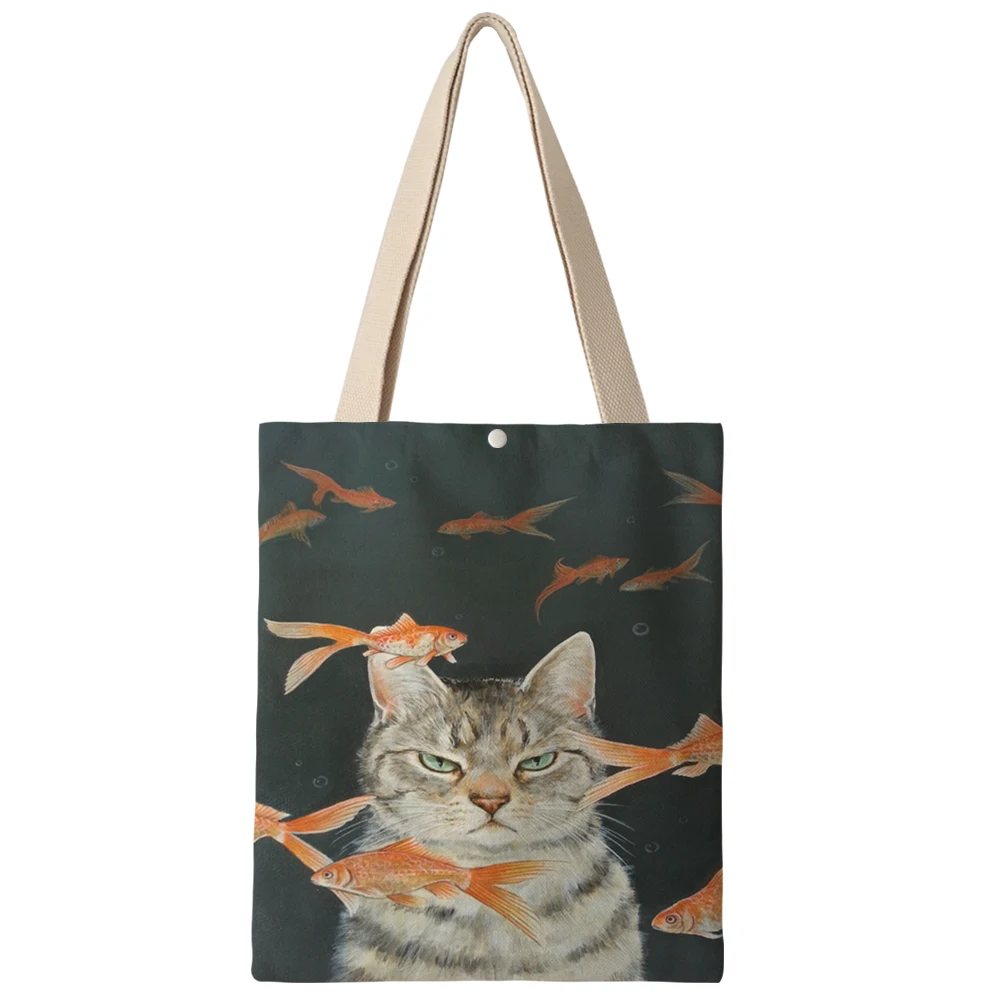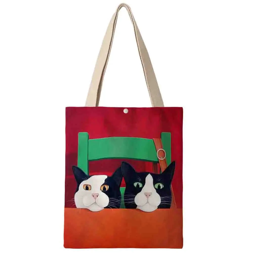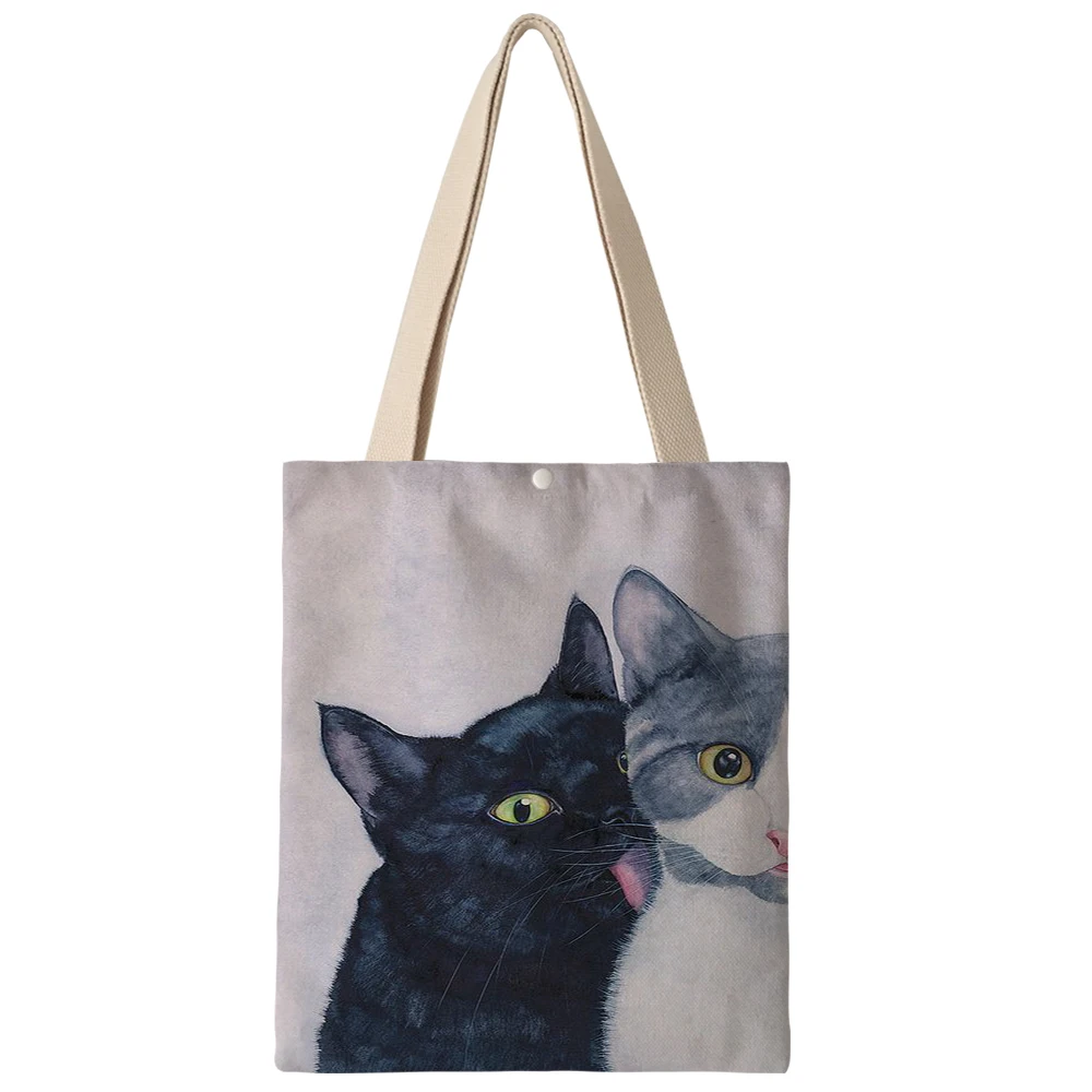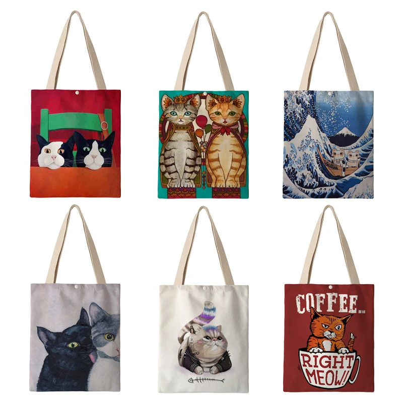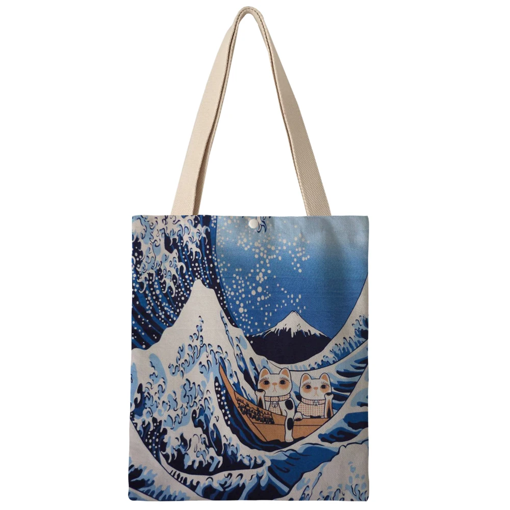 Холщовая Сумка через плечо в японском и корейском стиле для женщин, дамские двухсторонние сумки для покупок с принтом AKB01259