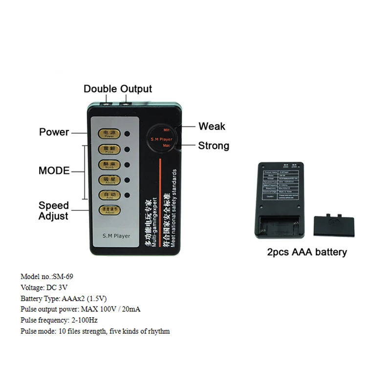 1. Потому что сила имеет сильное электро шок чувство, если это первый раз, чтобы использовать eletro shock Медицинские игрушки, пожалуйста, поверните на минимальную частоту, когда вы открываете силу, принимает части, закрывающие тело человека. Если вы выбираете сильную силу, вы можете почувствовать боль.
