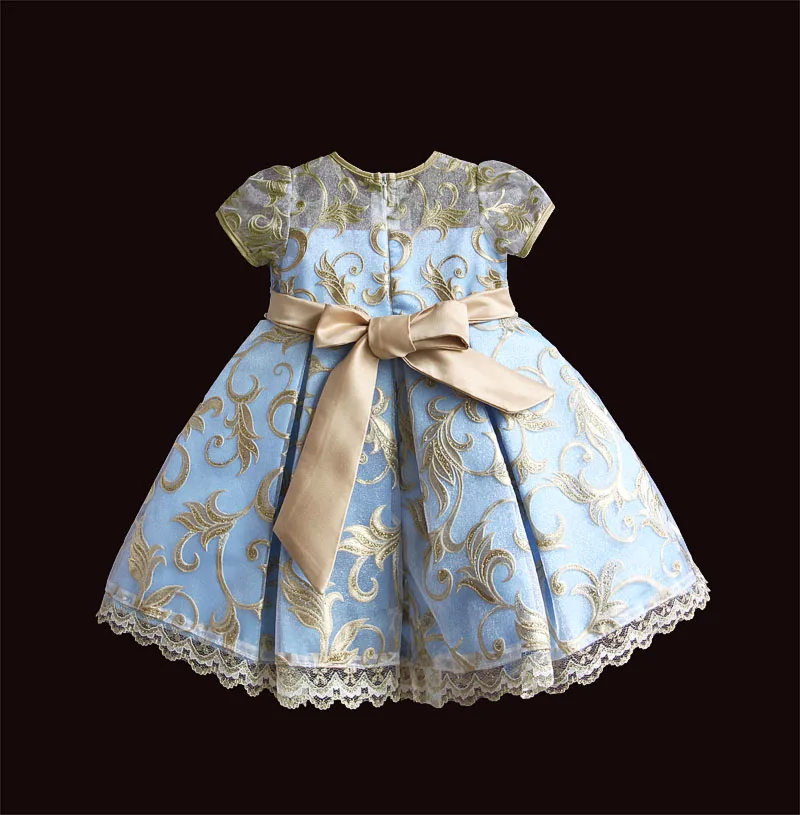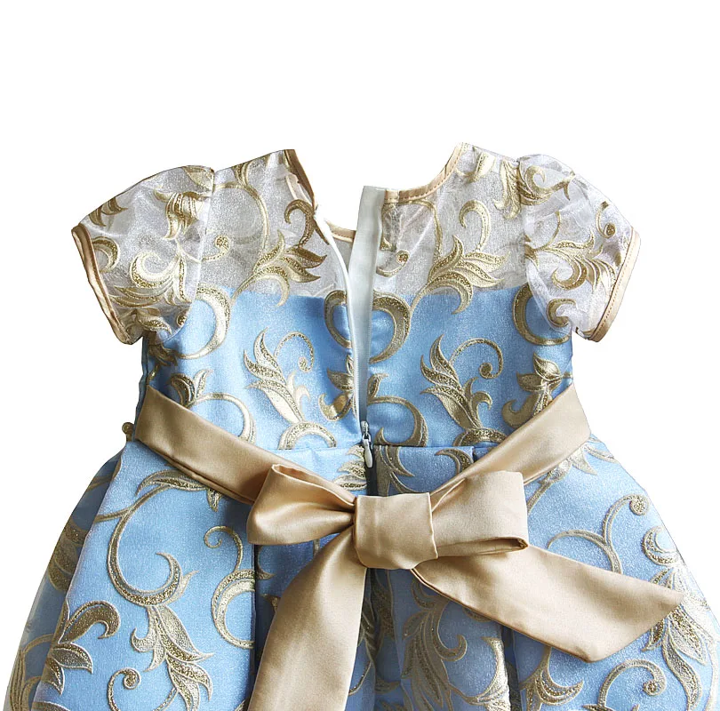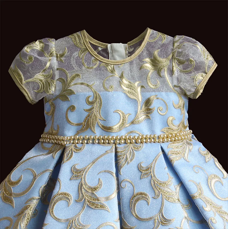 Платье для девочек в стиле ретро; Высококлассные летние платья с золотой вышивкой для девочек; Праздничная одежда с жемчугом для свадьбы, дня рождения; Возраст 12-3 года