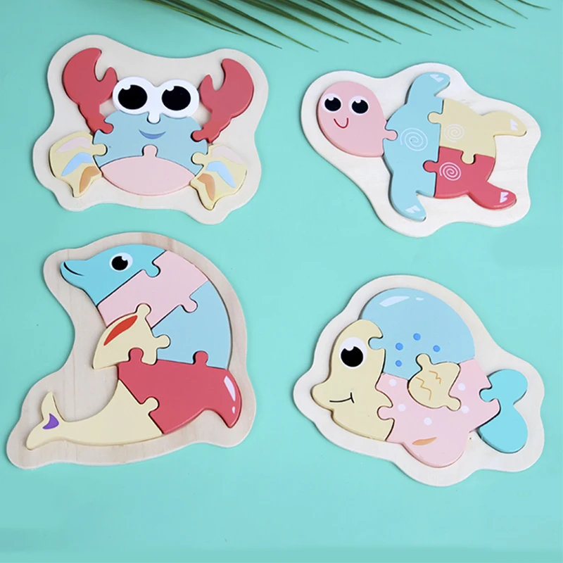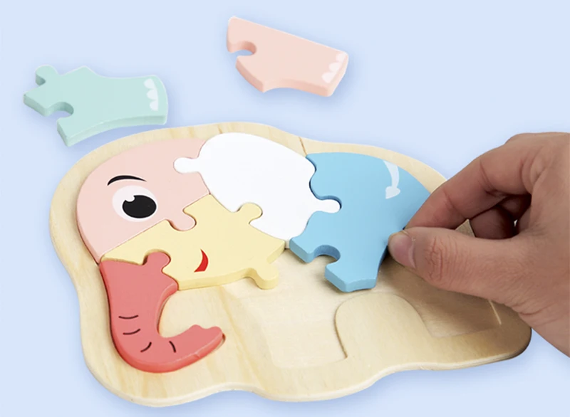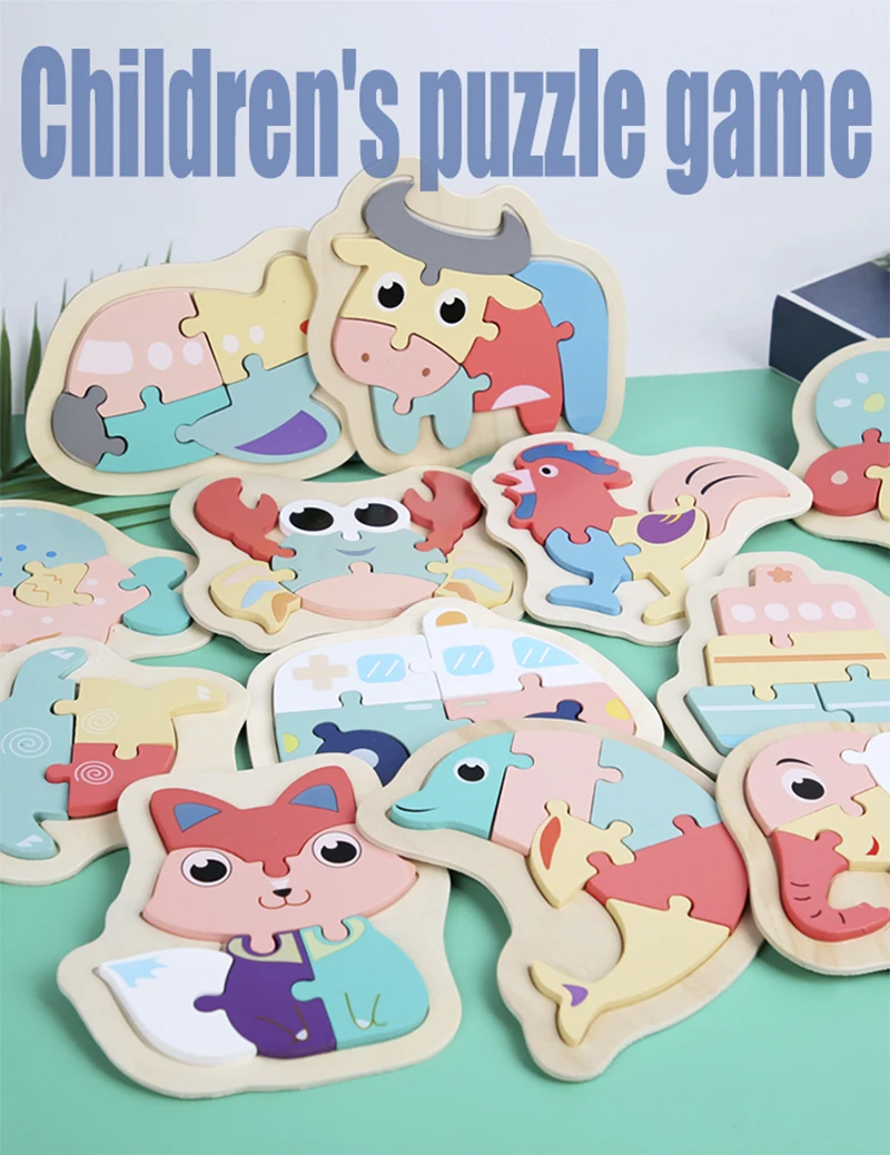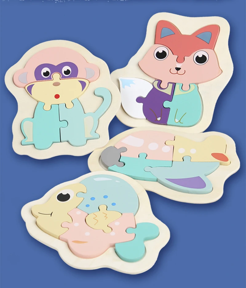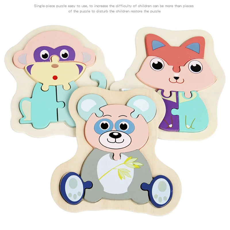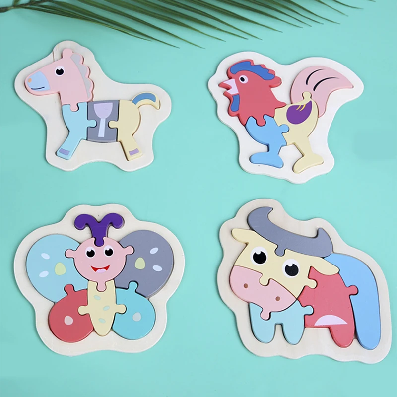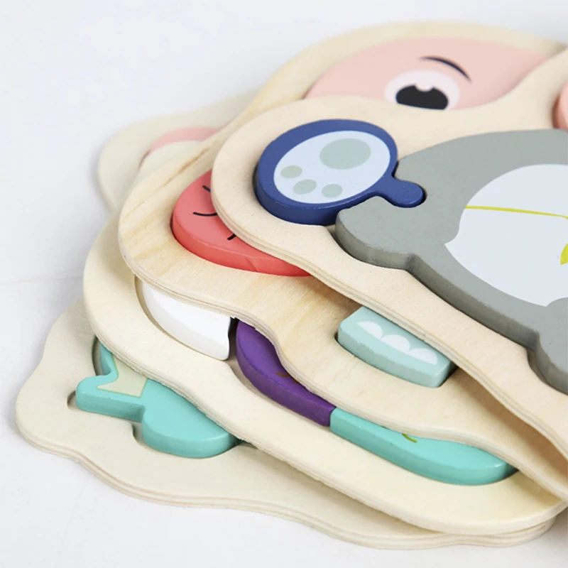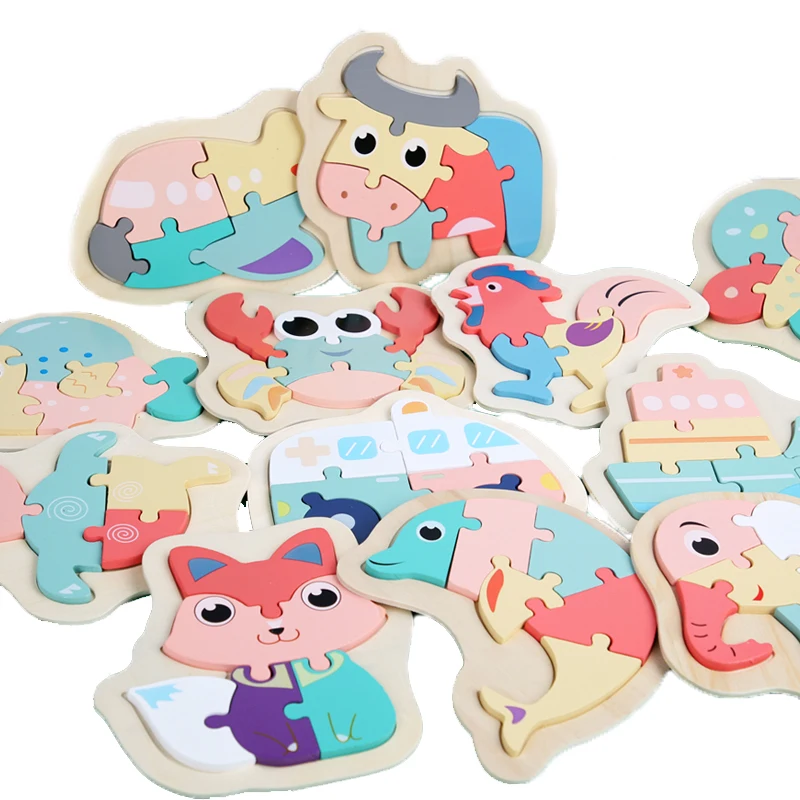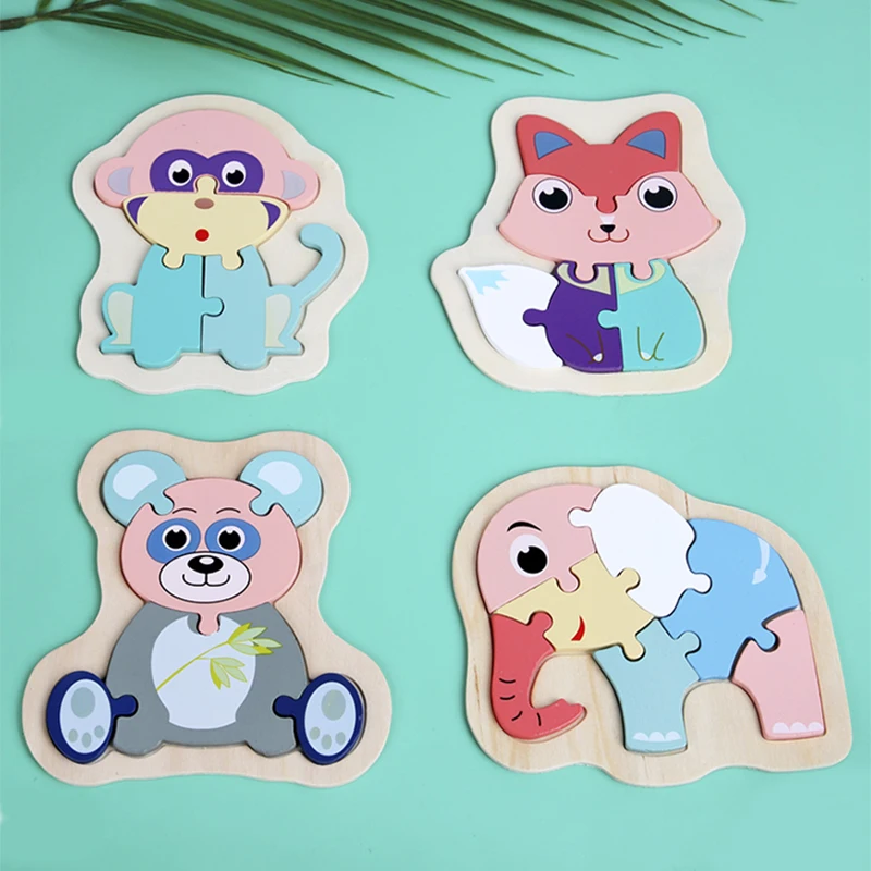 DIY деревянные игрушки, 3D пазл, Мультяшные животные, макарон, головоломки Монтессори, Обучающие Игрушки для раннего развития для детей, малышей, детей