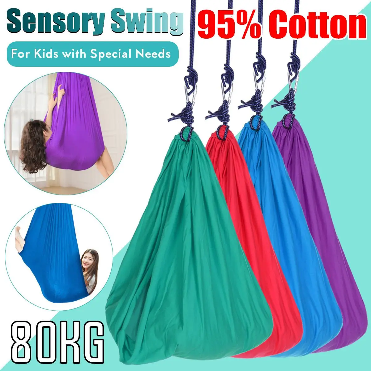-Качели изготовлены из мягкого, растягивающегося, 95% хлопка и 5% спандекса, который быстро окрашивается, моется (высыхает по линии), долговечен и предназначен для детей в возрасте от трех лет и старше.