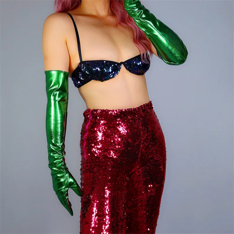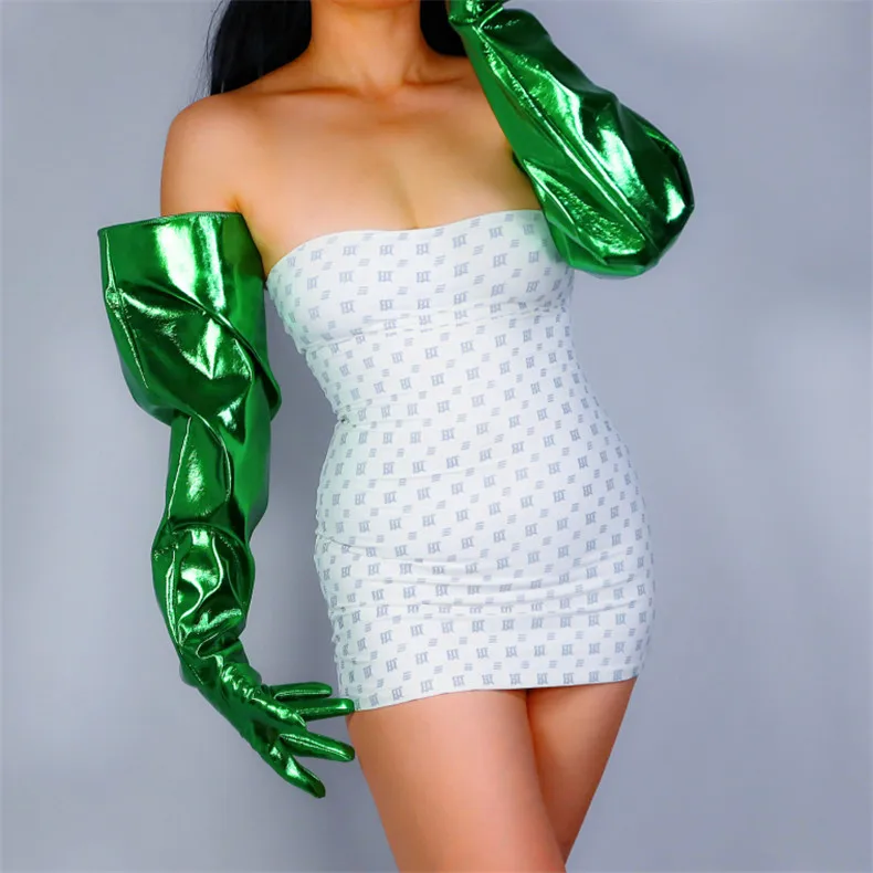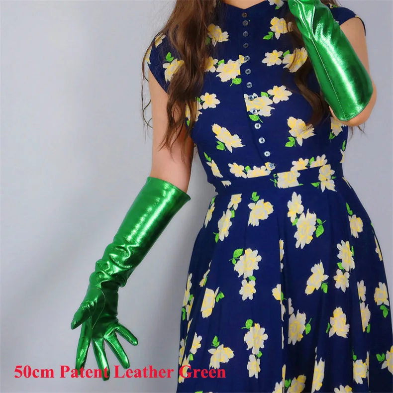 Длинные латексные перчатки женские из искусственной овчины лакированная кожа 35 "90 см Сияющие зеленые свободные женские длинные кожаные перчатки WPU244