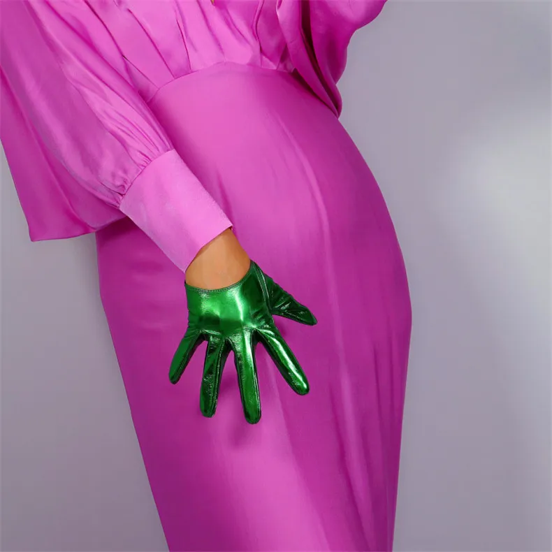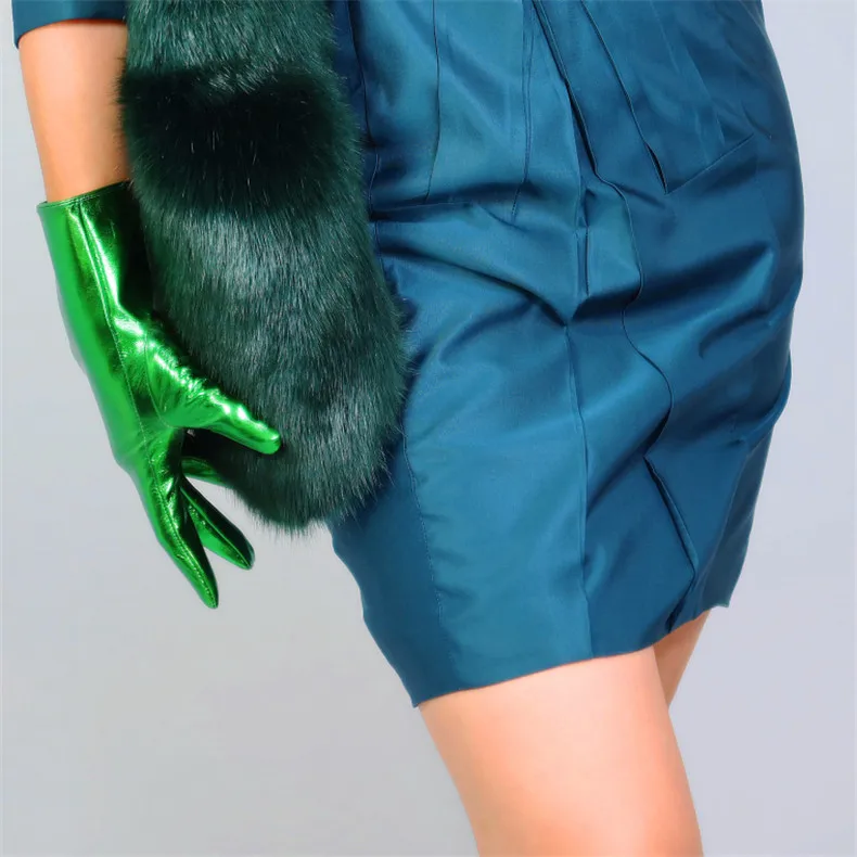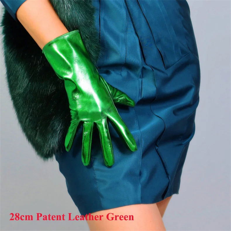25 см лакированные кожаные перчатки, женские кружевные короткие сти...