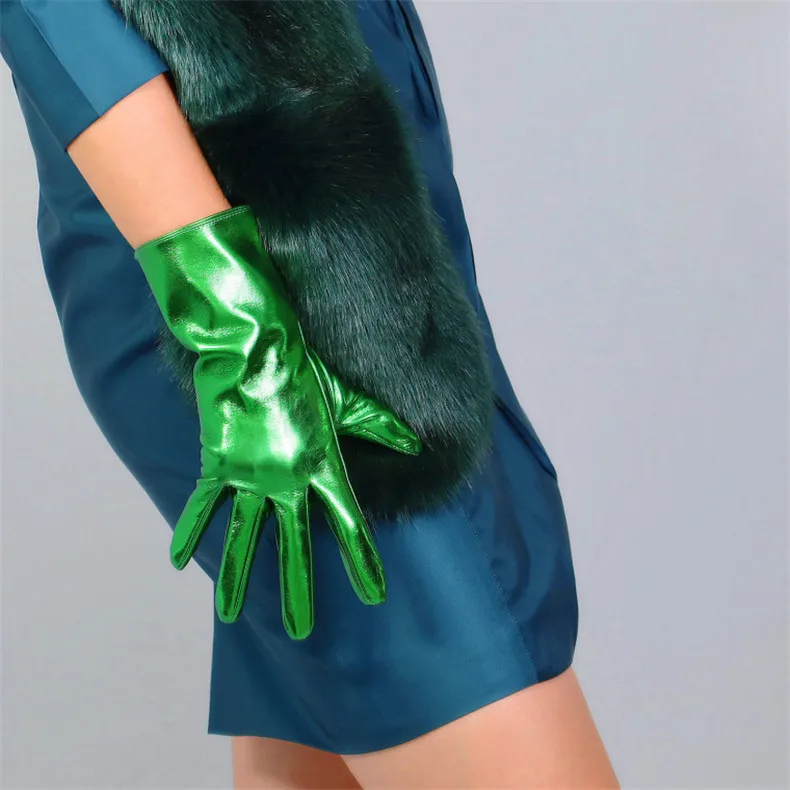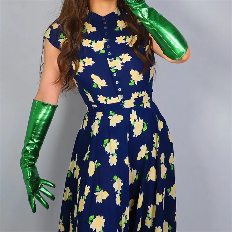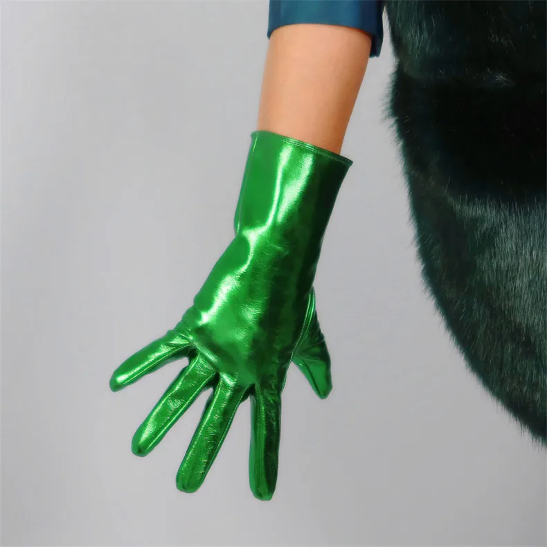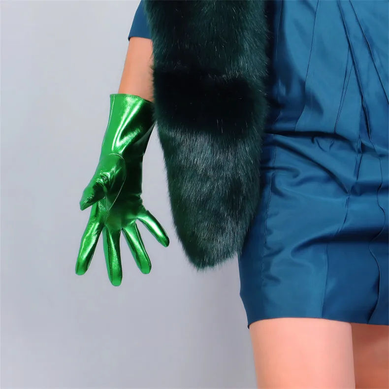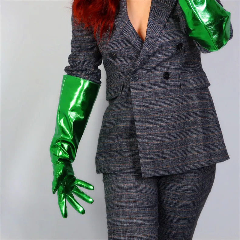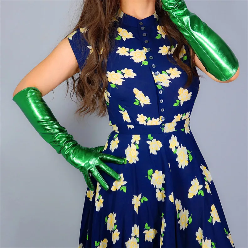 Латексные длинные перчатки, женские, из искусственной овечьей кожи, 35 дюймов, 90 см, блестящие зеленые, свободного кроя, длинные кожаные перчатки WPU244
