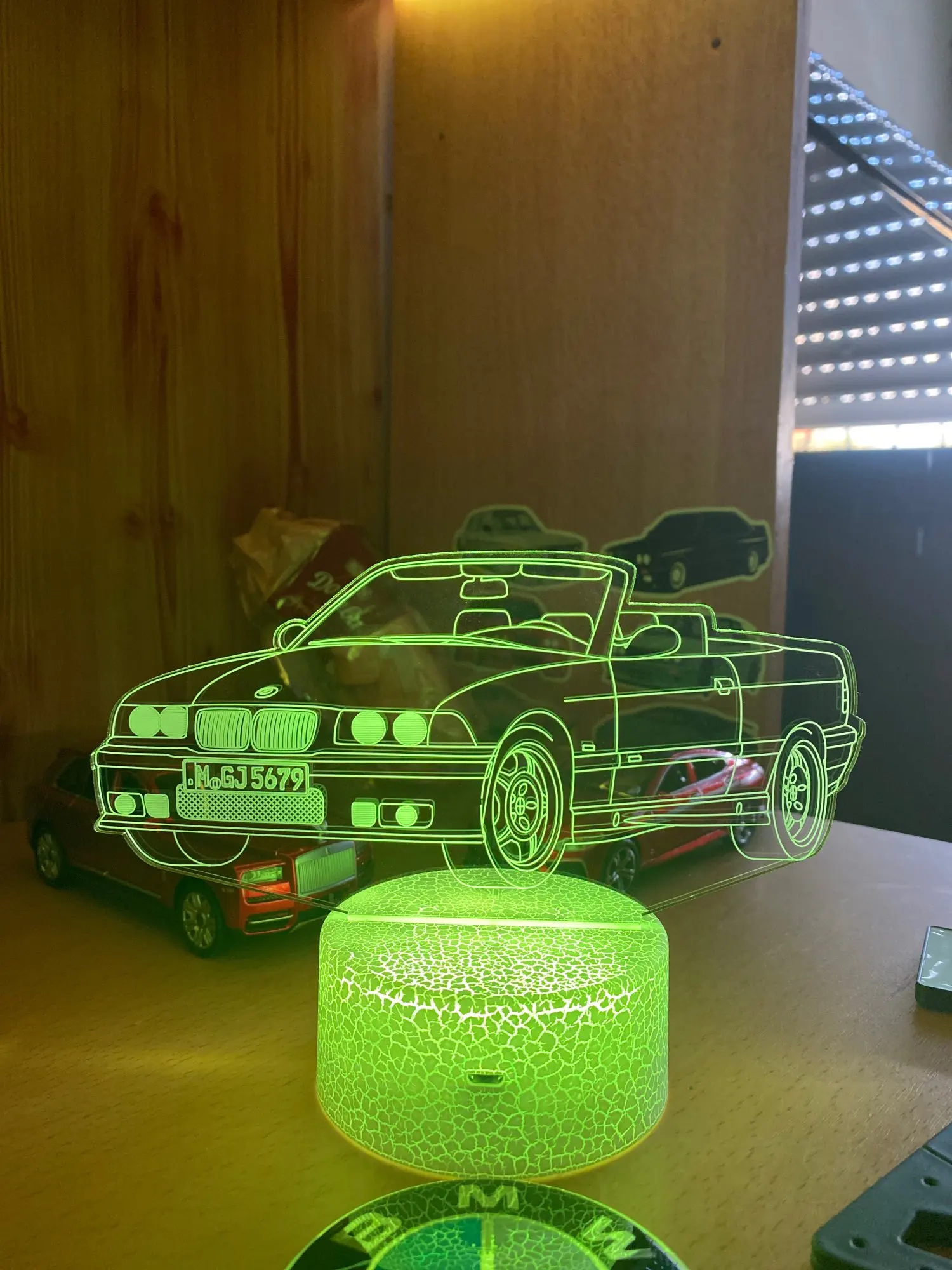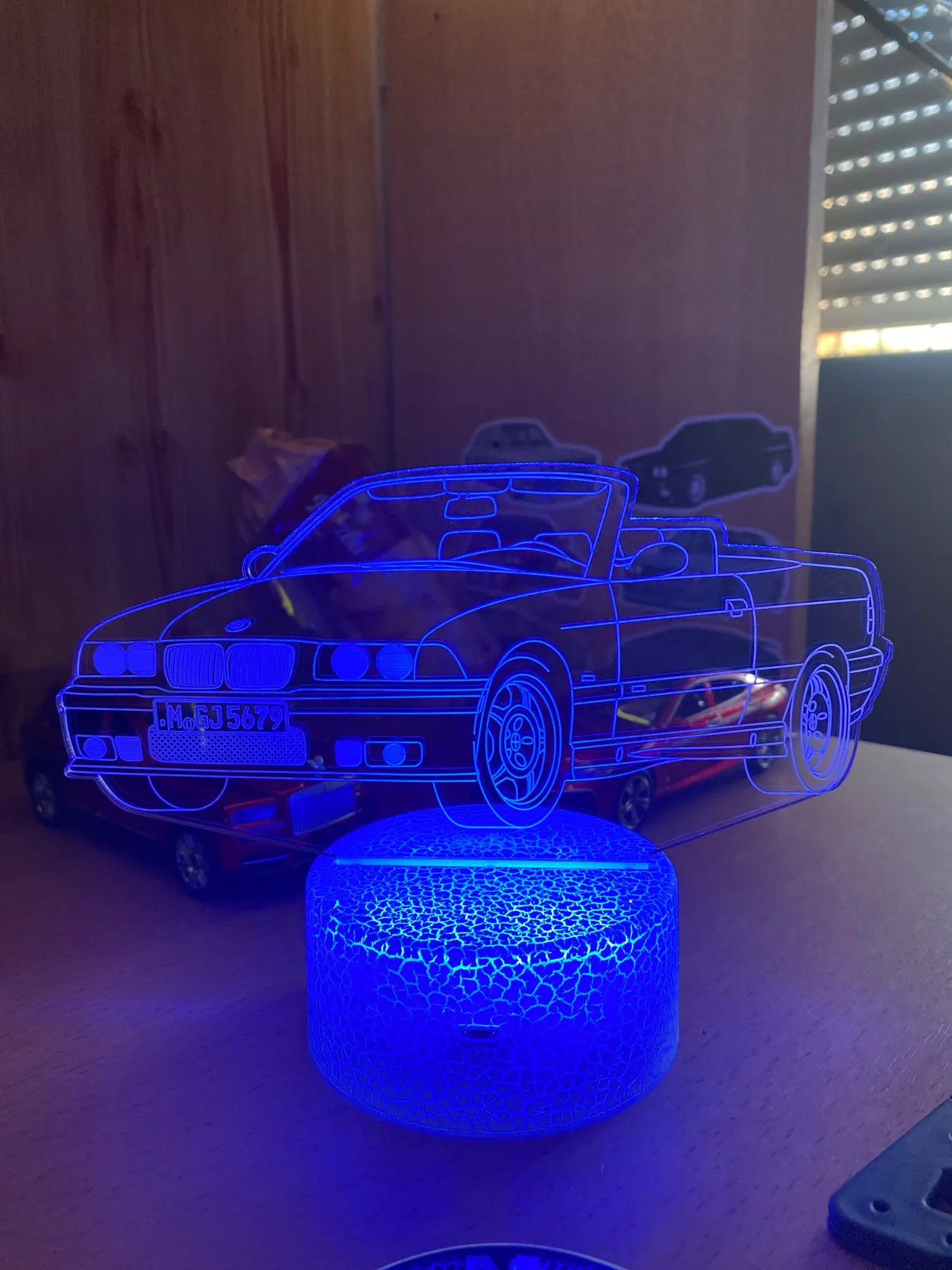 Они не сообщают, что это акрил в форме автомобиля, и это то, что он включается, поэтому он очень хорошо выглядит на свету и много освещает.