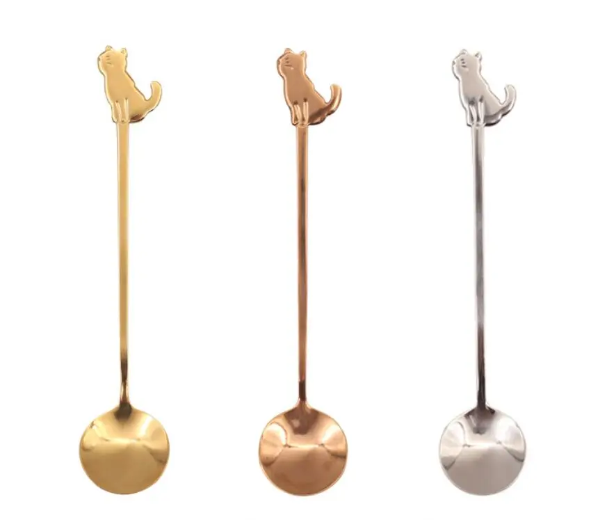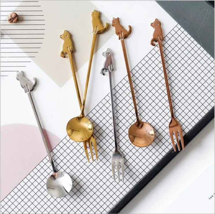Милый котенок кошка фрукты вилка большая обеденная ложка маленький ложка для размешивания кофе лед чай десерт ложка посуда из нержавеющей стали