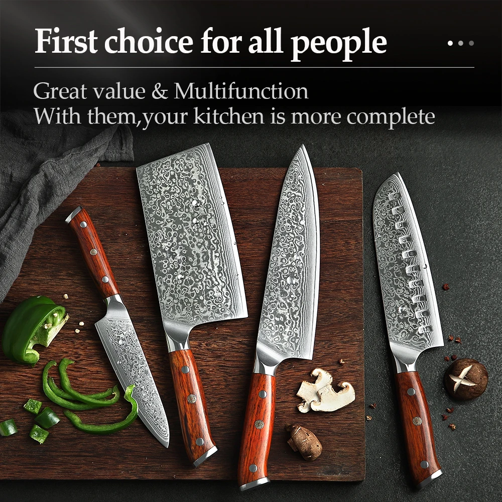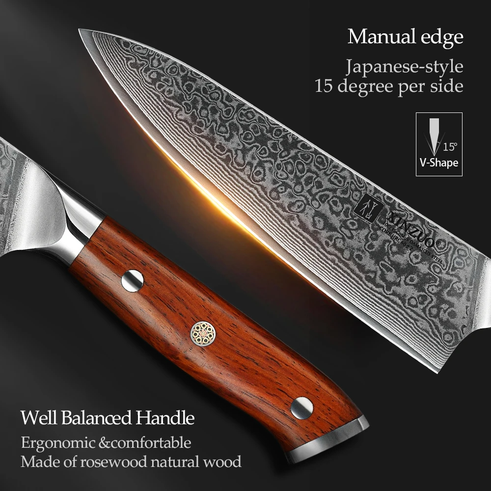 Набор ножей XINZUO из дамасской стали, комплект подарочных кухонных инструментов с рукояткой из палисандра, 60 Hrc, с держателем и аксессуарами, 5 шт.