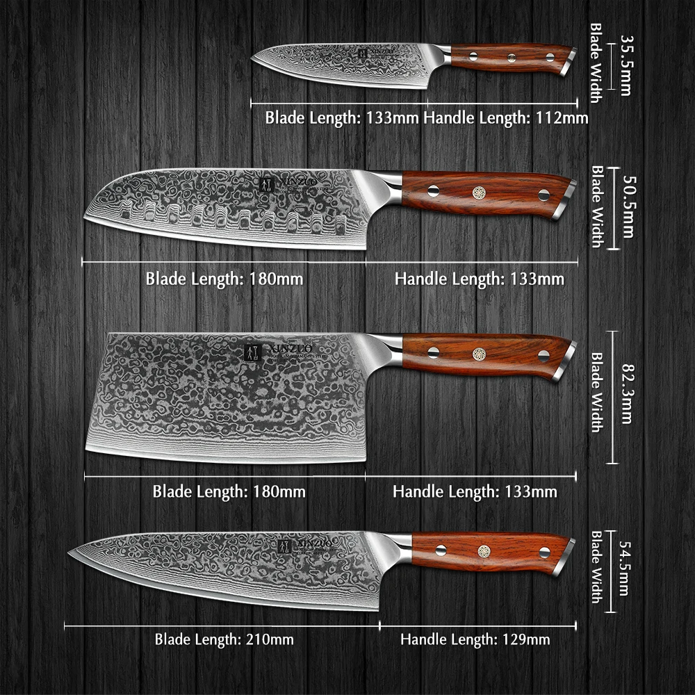 Набор ножей из дамасской стали XINZUO Yu серии 5 шт.