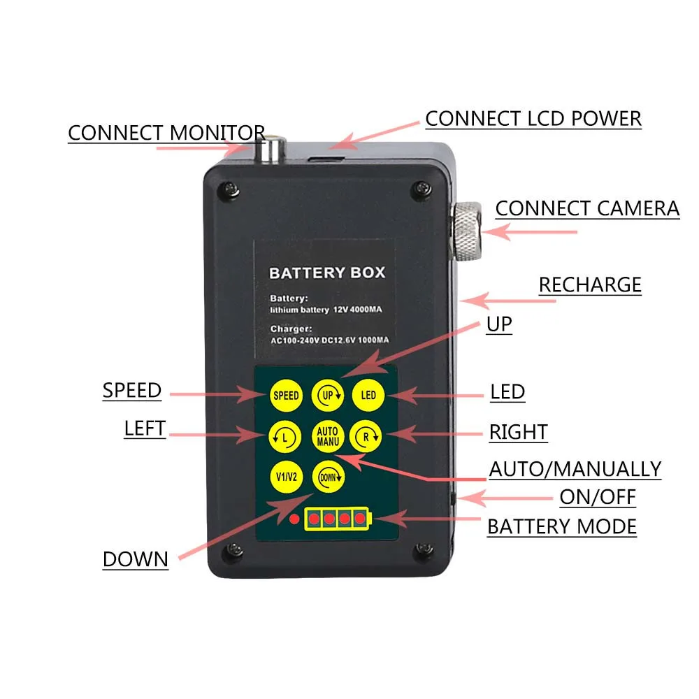 Подводная видеокамера с вертикальным вращением 0-180 градусов; Горизонтальная rotating0-360 градусов головка панорамирования для просмотра объектов во всех направлениях. Это CCD камера, очень четкое изображение. Он был специально разработан для подводной деятельности, такой как исследование морского дна, Океанская рыбалка и ледовая рыбалка, осмотр скважин и т. д.
