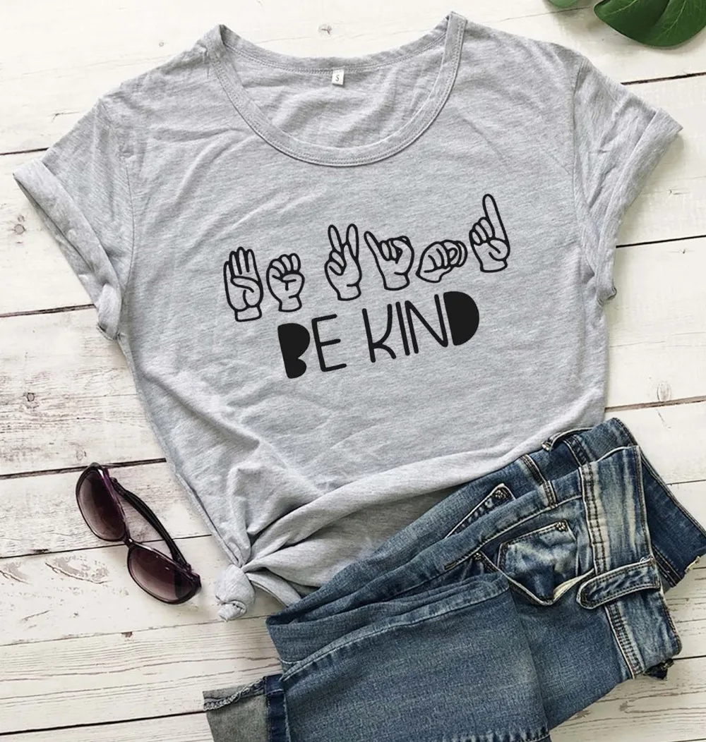 Женская футболка с надписью Sign Language Be Kind, вечерние хлопковые футболки с надписью acceptation religion, M192