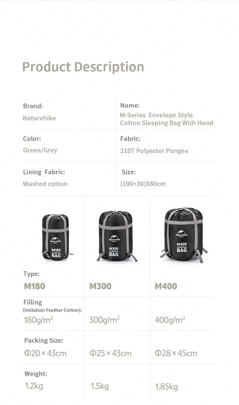 Спальный мешок-конверт Naturehike серии M, сращивающийся, моющийся, для отдыха на открытом воздухе, кемпинга, 3 сезона, с кепкой, спальный мешок для походов и путешествий