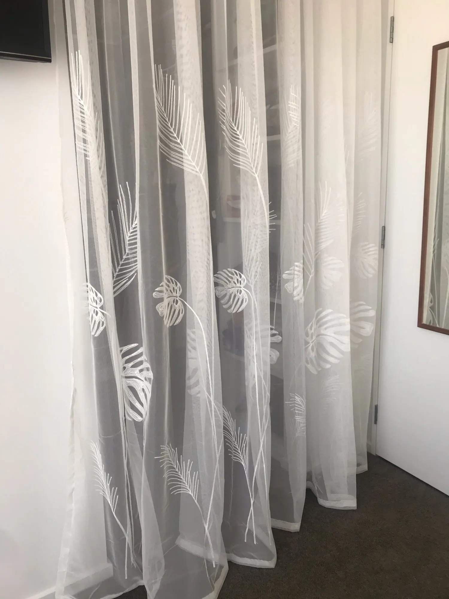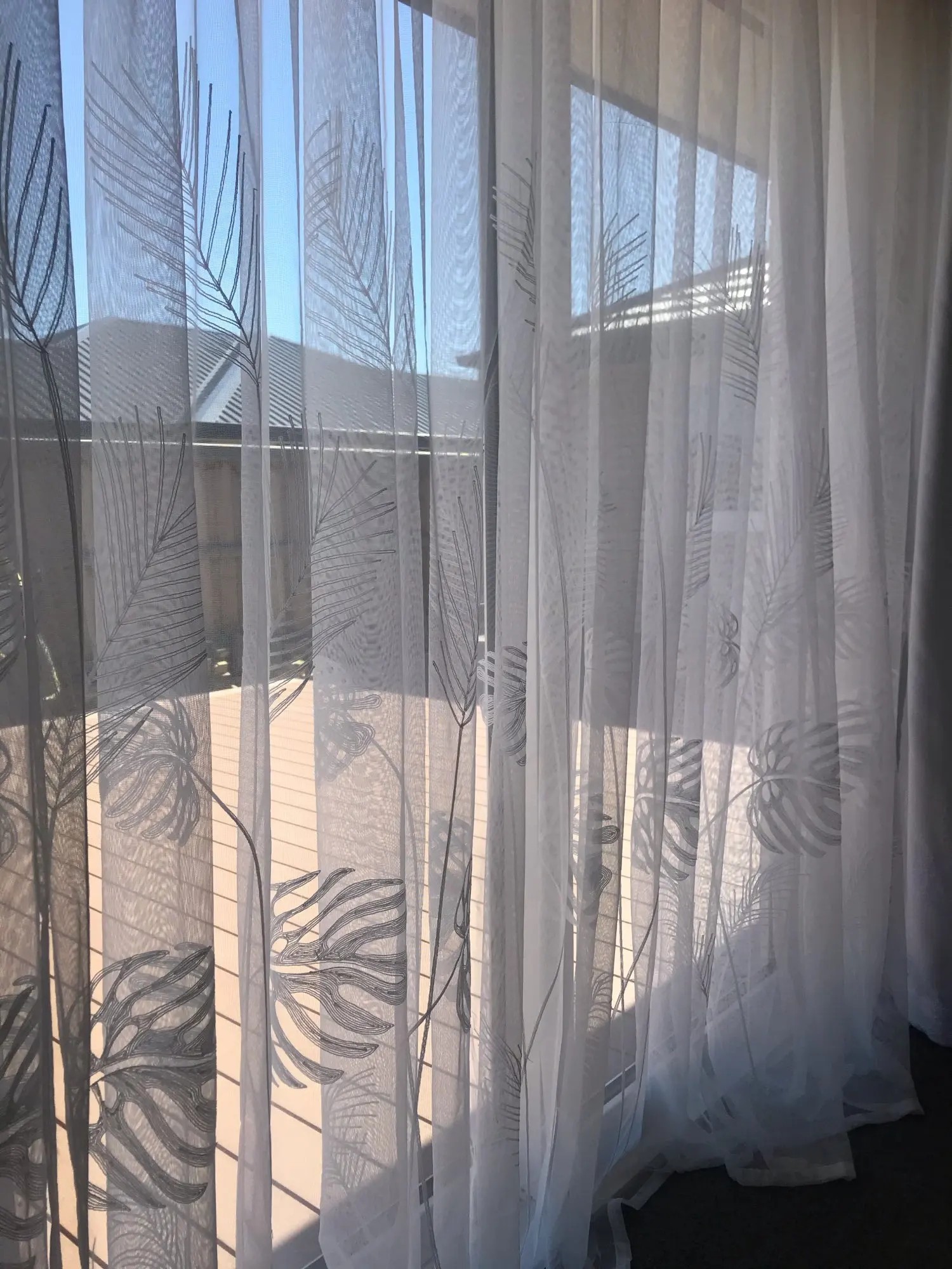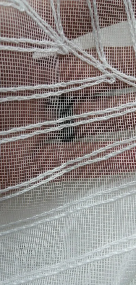 Лента, которая использованна по верху занавески для крепления крючков, имеет черную линию-строску. Кому не нужна кипельно белая гардина, тот не заметит. Материал не туль, а сетка. Углы при подшиве слегка 1-3см задранны кверху. Были небольшие сбежавшие-распустившиеся петли по рисунку. При грубой стирке может продолжить распускаться. Спасибо Алиекспрессу за помощь в споре. В общем, конечно, цена соответствует продукту.
