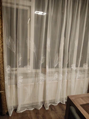 Очень долго отправляли шторы, но доставили с курьером до двери. Поначалу, когда увидела их, расстроилась т.к это не органза, а мелкая сеточка, причем с акриловым блеском. Думала, будут смотреться дëшево, но нет, смотрятся хорошо. Просила продавца подшить высоту до 240 см, что и было сделано. Всë прошито аккуратно, без торчащих ниток. Брала по совету продавца ширину тюли в 2 раза больше ширины окна - так выглядит лучше