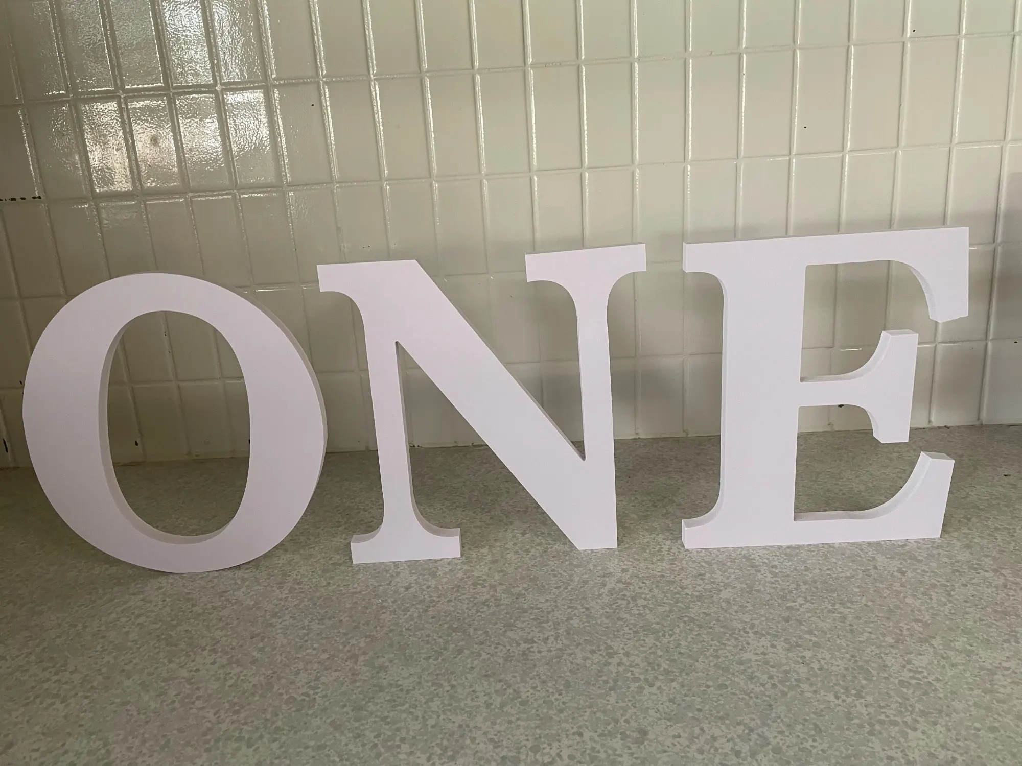 Первоначальный дизайн изделия был таким, что три буквы были отправлены вместе. Но во избежание проблем с транзитной доставкой три буквы «O N E» отправляются в отдельной упаковке. Каждая буква поставляется с небольшой деревянной подставкой, чтобы сделать ее подставкой для фотосессий.