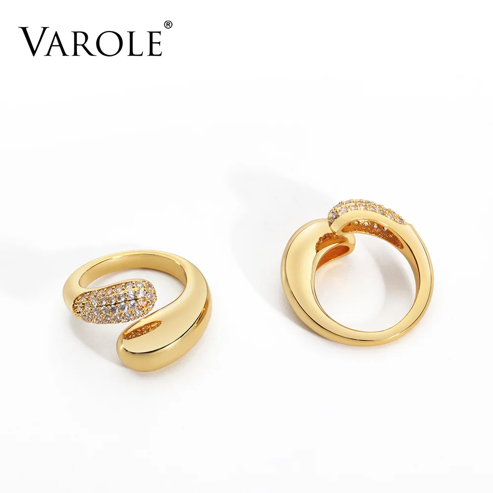 Кольцо VAROLE с гладкой поверхностью и кристаллами для женщин, кольца на палец в стиле панк, золотистые аксессуары, бижутерия