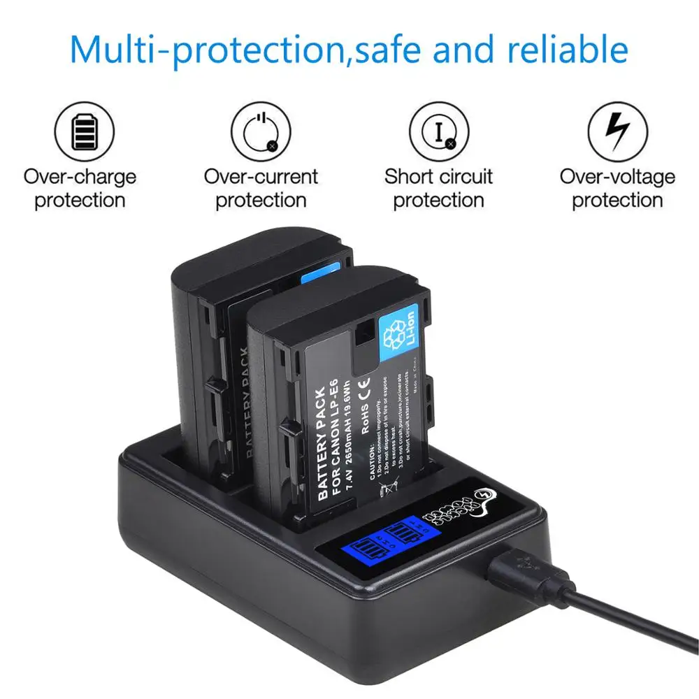 2650mAh LP-E6 LP-E6N камера зарядное устройство набор для Canon 5D Mark II III 7D 60D EOS 6D 70D 80D