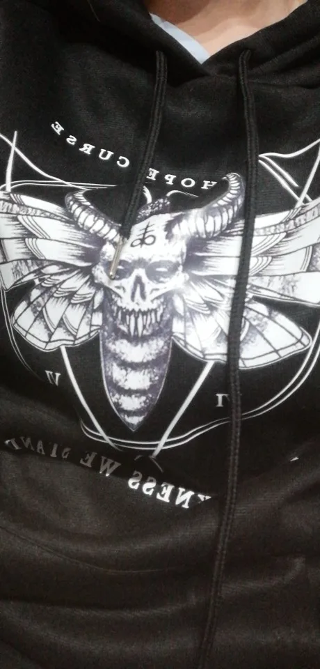 Дьявол зима новый Темный панк женский винтажный Harajuku Повседневный модный мультяшный принт размера плюс свободный Готический Новый свитшот с капюшоном