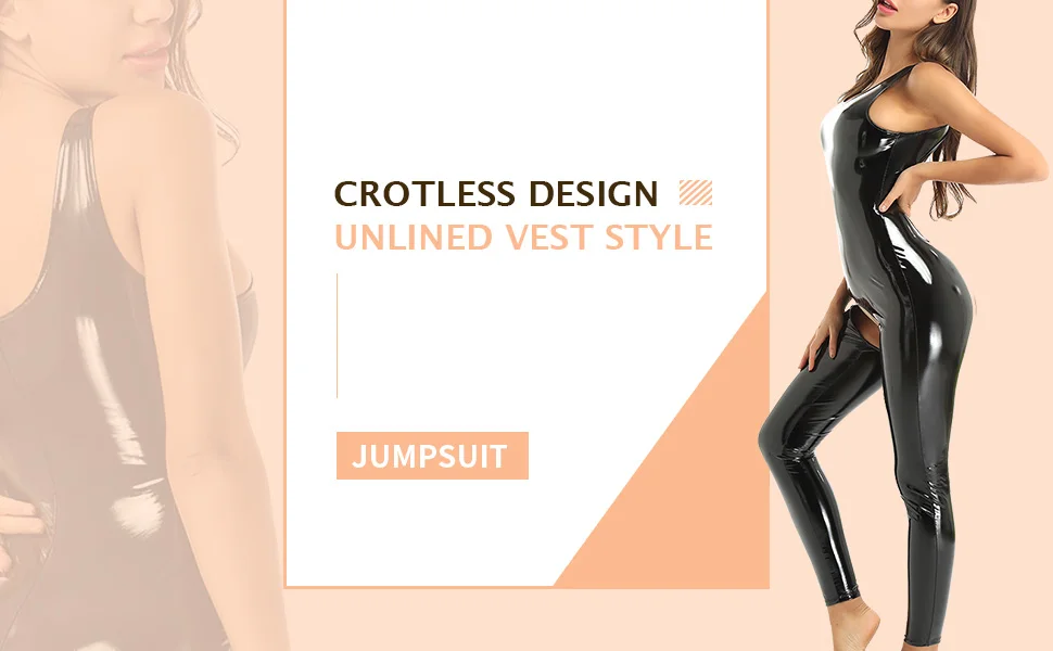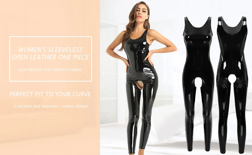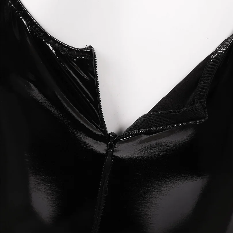 Комбинезон женский из лакированной кожи, без рукавов, с вырезом