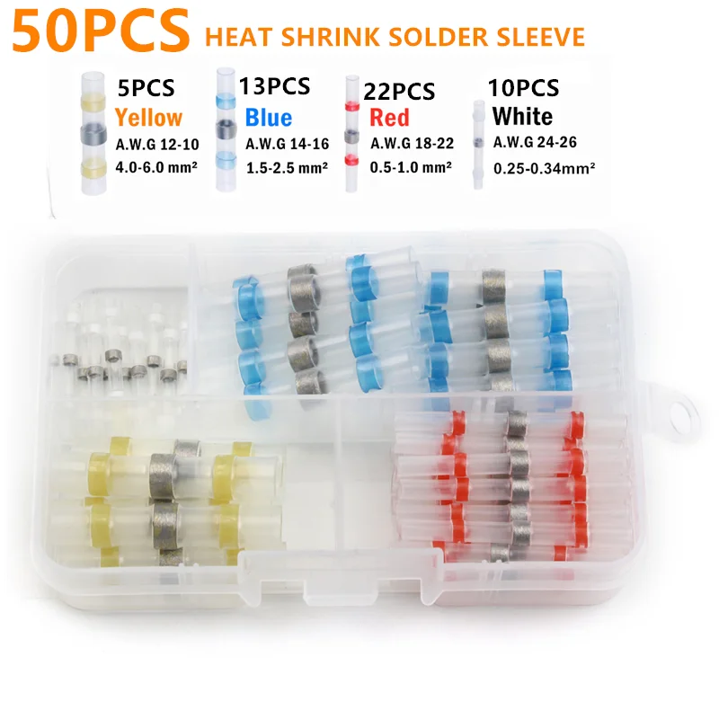 Изолированный термоусадочный соединитель для электрических проводов, водонепроницаемый герметичный стыковой наконечник, труба для пайки, 50 шт.