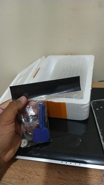 пришел не особо медленно, упакован отлично - много пупырки и большая поролоновая коробка. после установки: цвета искажённые, больше отдает синим, на ощупь совершенно не как оригинал, уверен, что и на прочность тоже. в комплекте были 3 отвёртки (ни одна не подошла), присоска, 2 шпателя, медиатора и двухсторонний скотч, за что большое спасибо. лучше бы вместо трёх отвёрток лежала пленка/стекло)